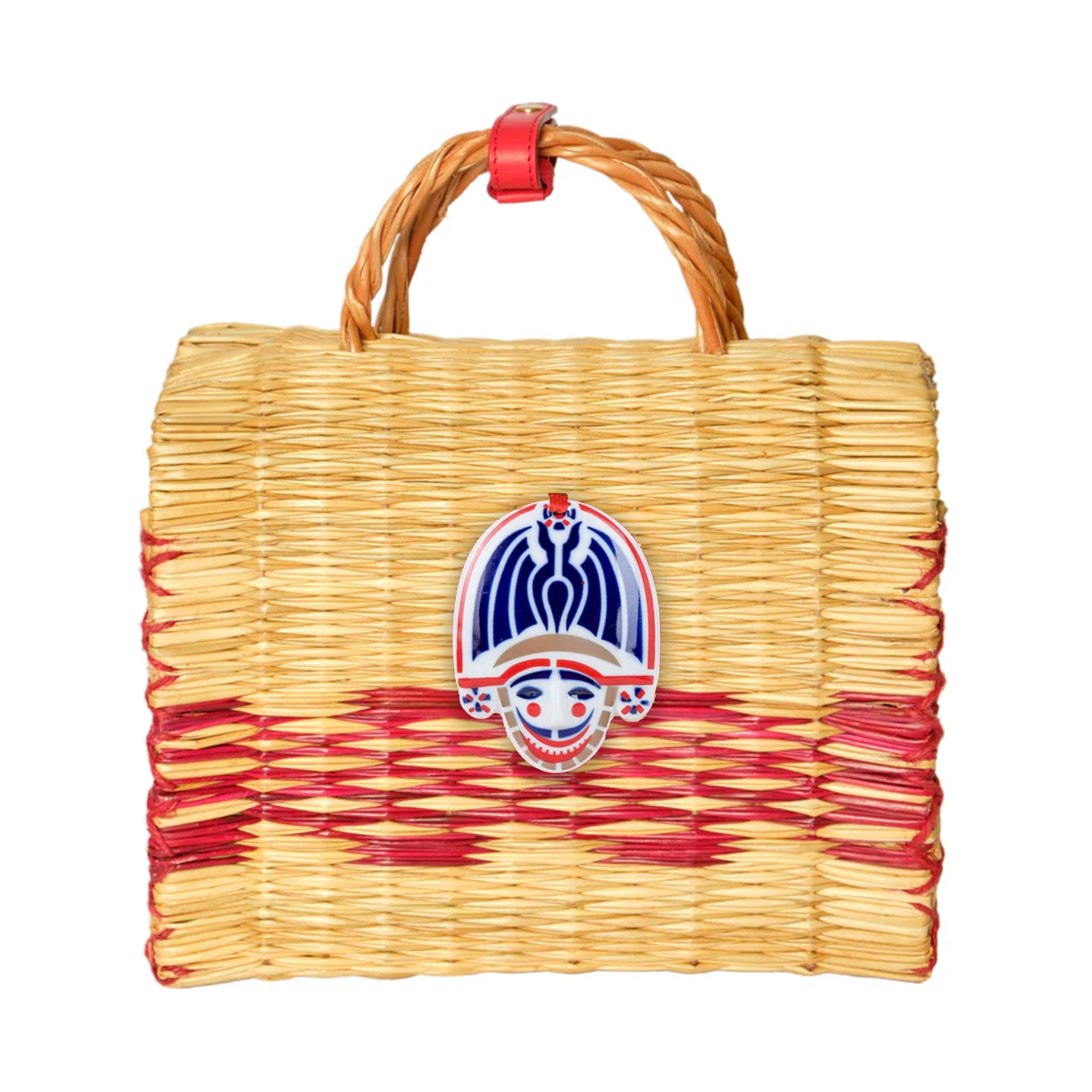 At its heart lies our lucky charm talisman handbag, a collage of the traditional Portuguese handwoven reed basket with the porcelain Cigarron charm from Sargadelos, a lucky symbol of the Galician carnival.