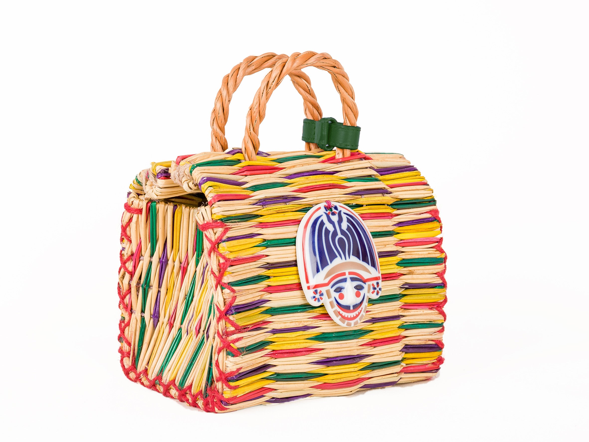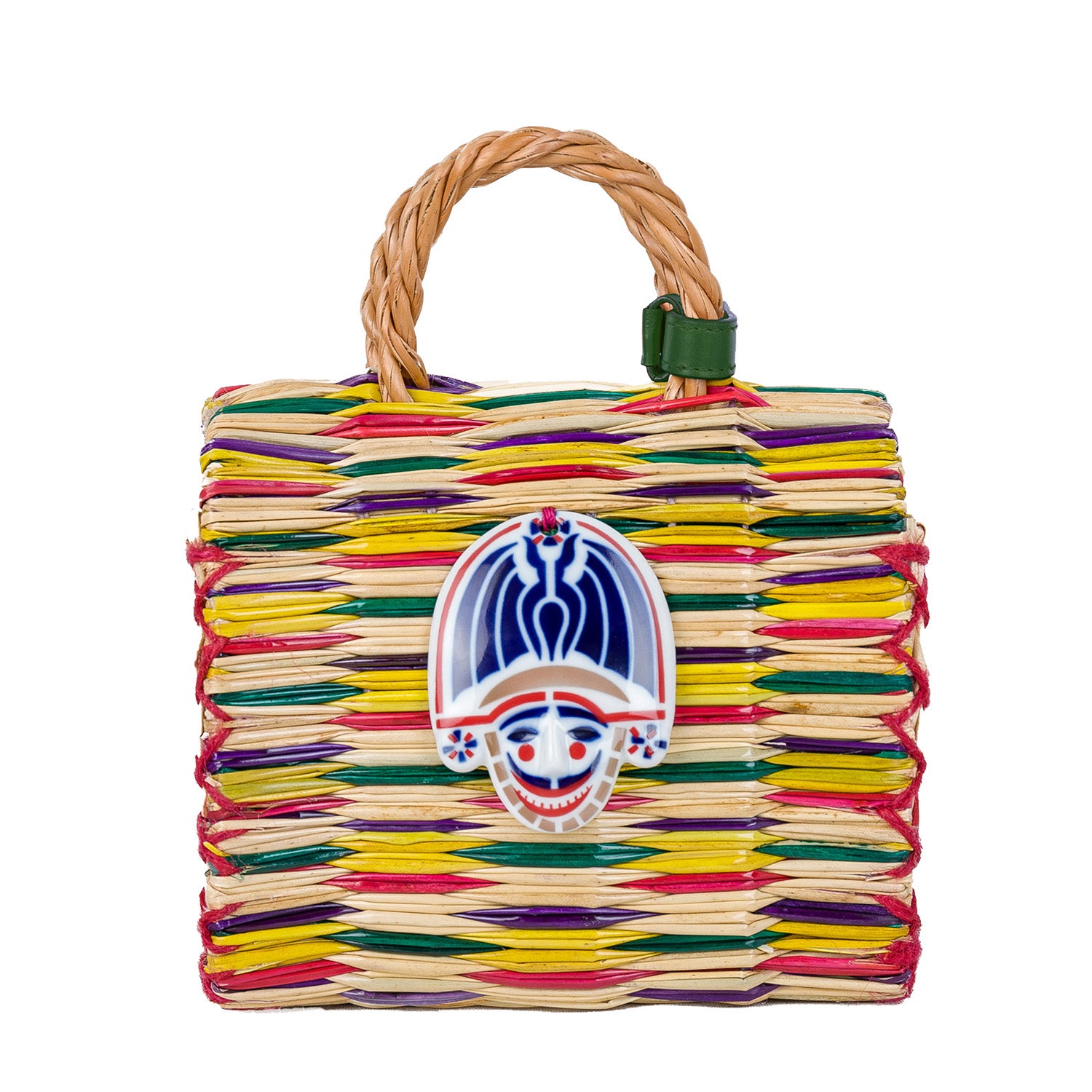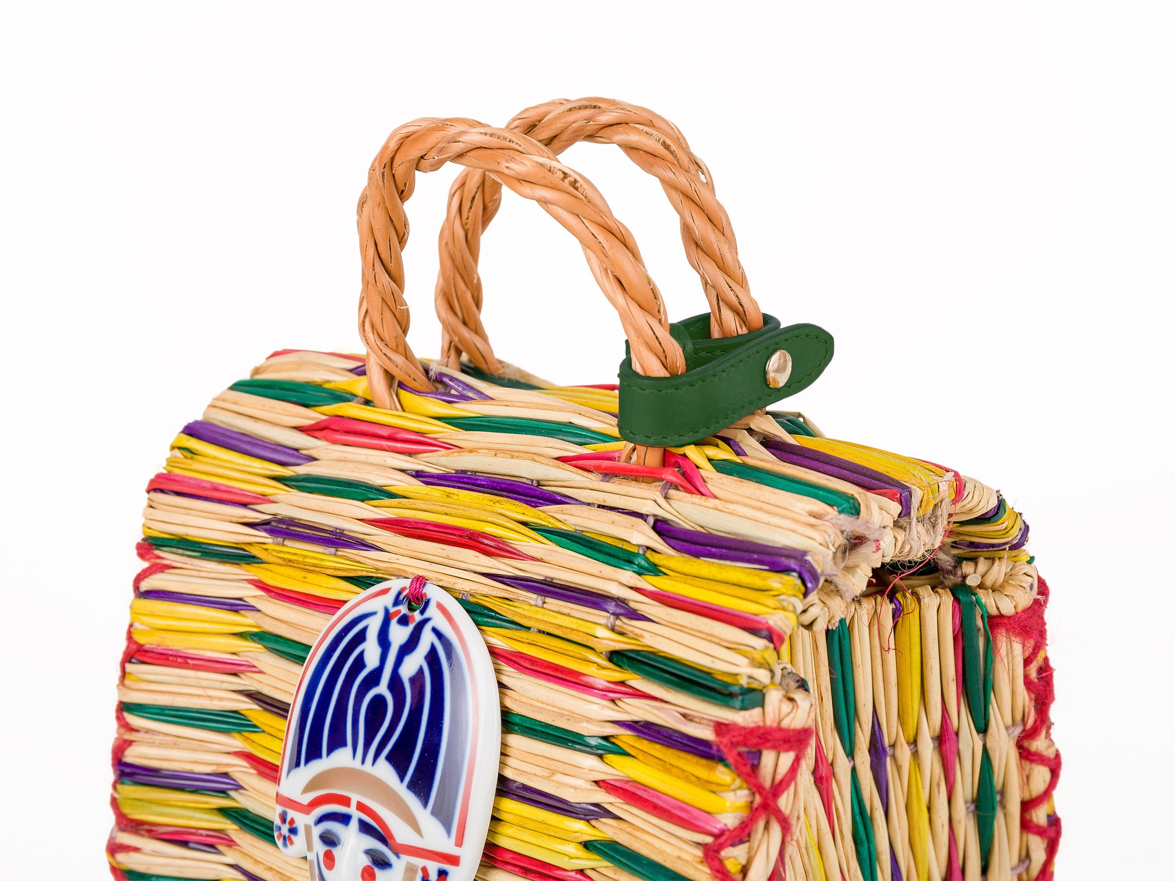At its heart lies our lucky charm talisman handbag, a collage of the traditional Portuguese handwoven reed basket with the porcelain Cigarron charm from Sargadelos, a lucky symbol of the Galician carnival.