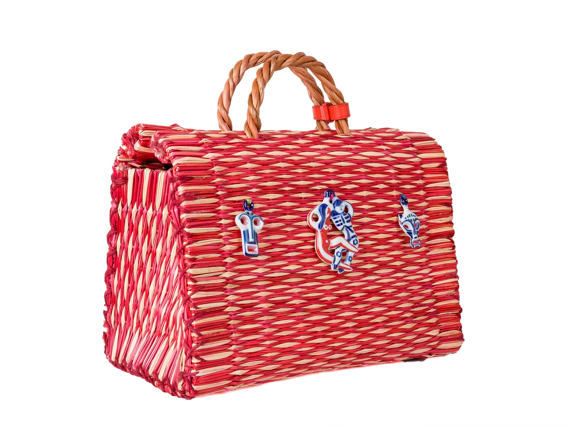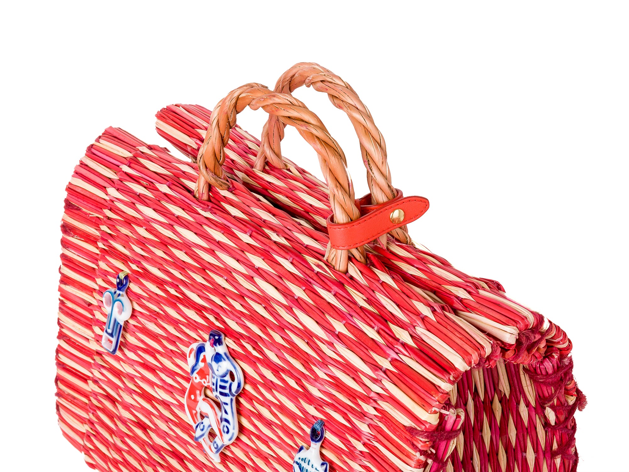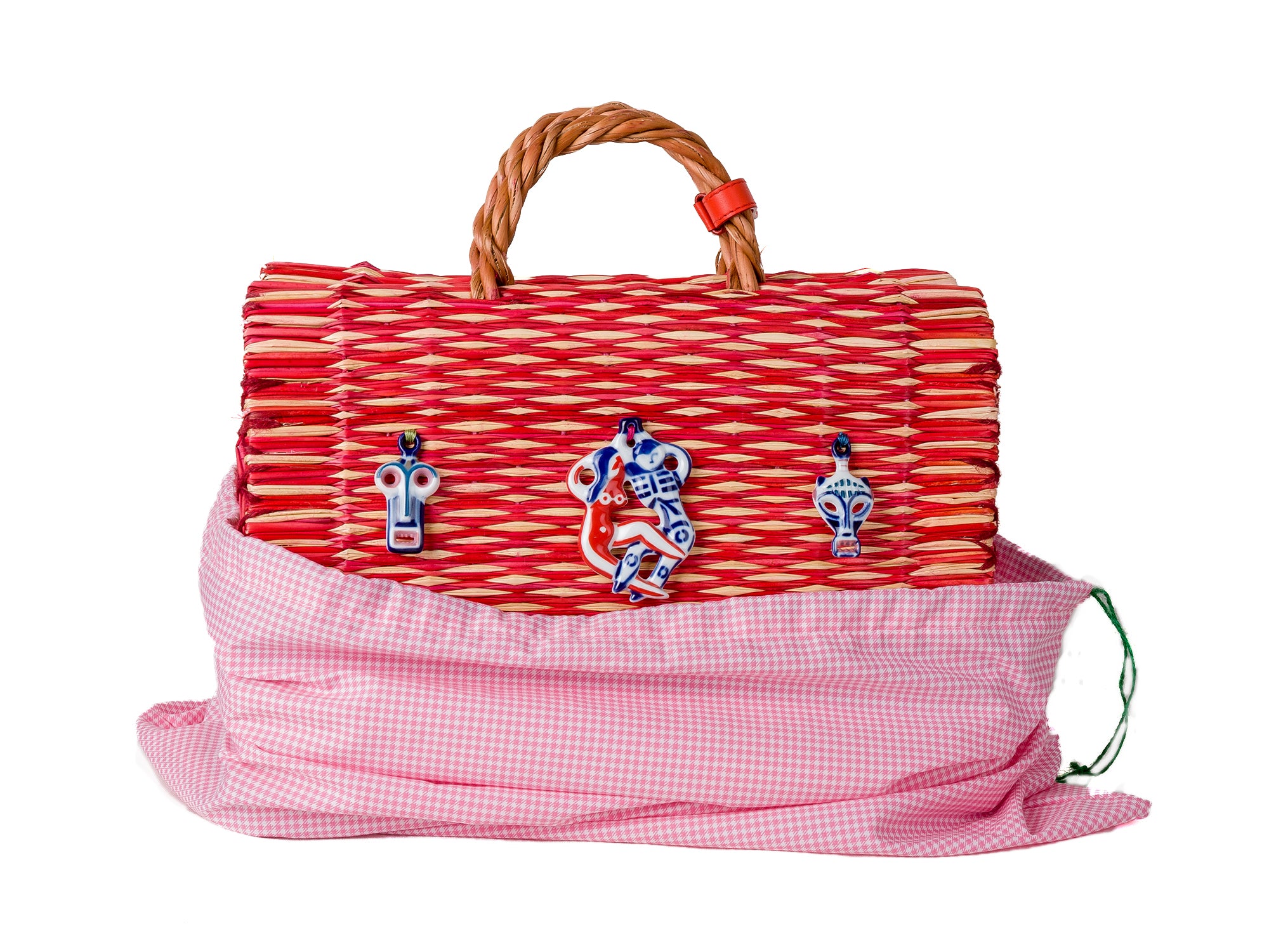 At its heart lies our lucky charm talisman handbag, a collage of the traditional Portuguese handwoven reed basket with the porcelain Biser charm from Sargadelos.The biser charm helps those who seek love.