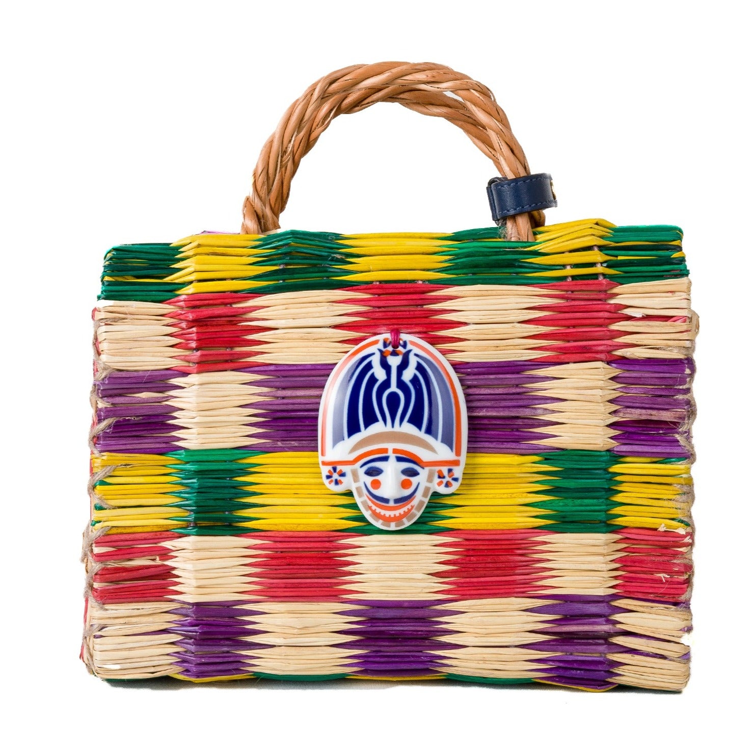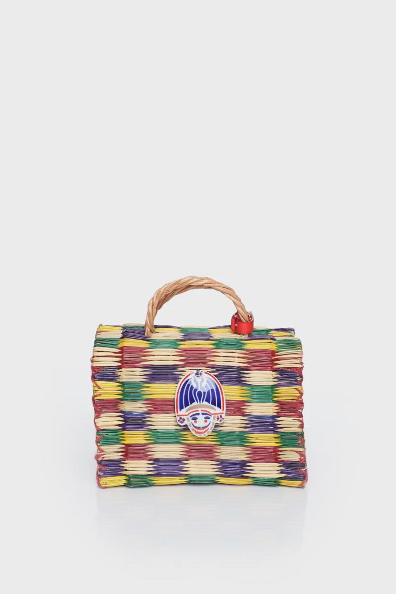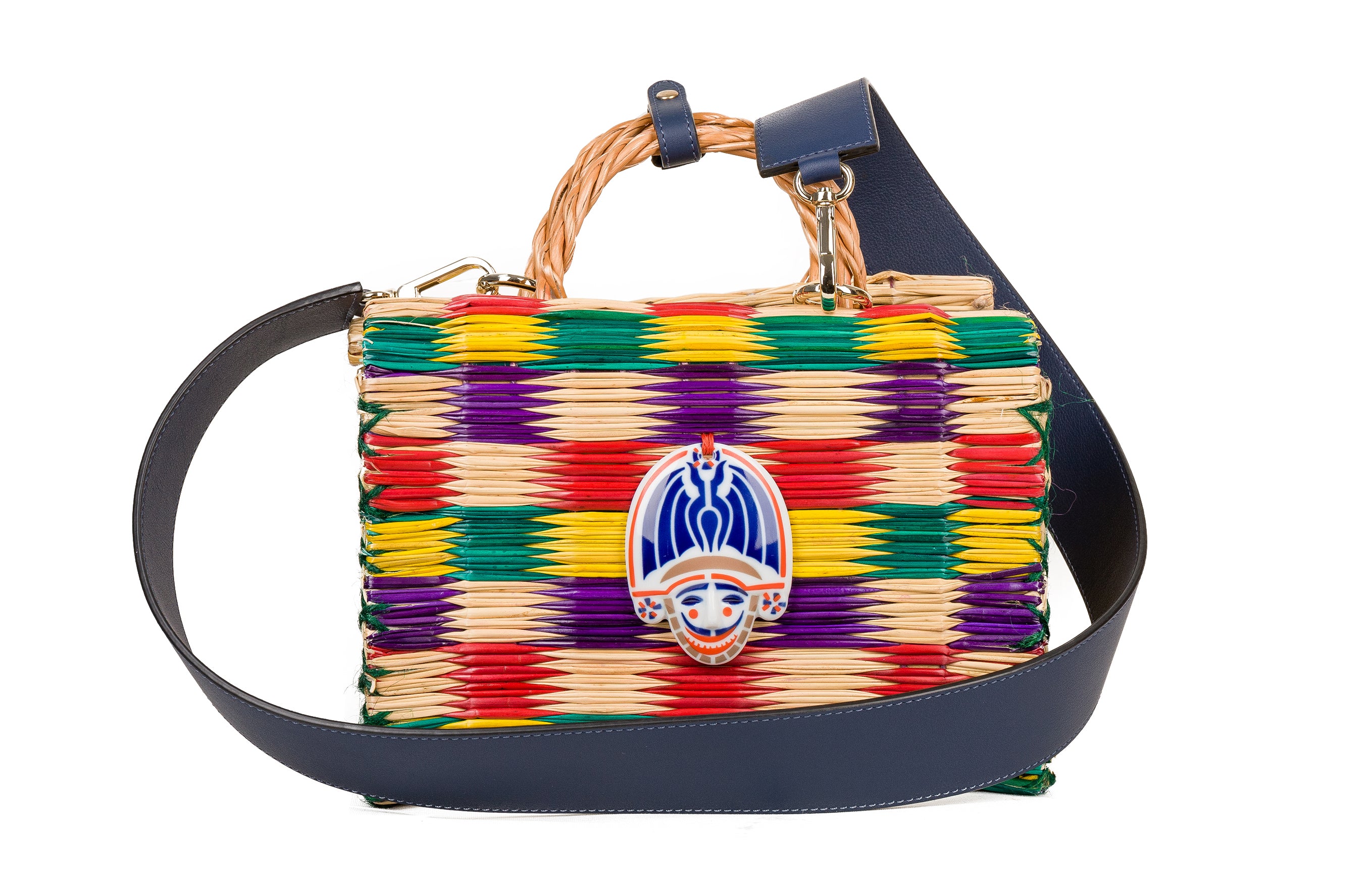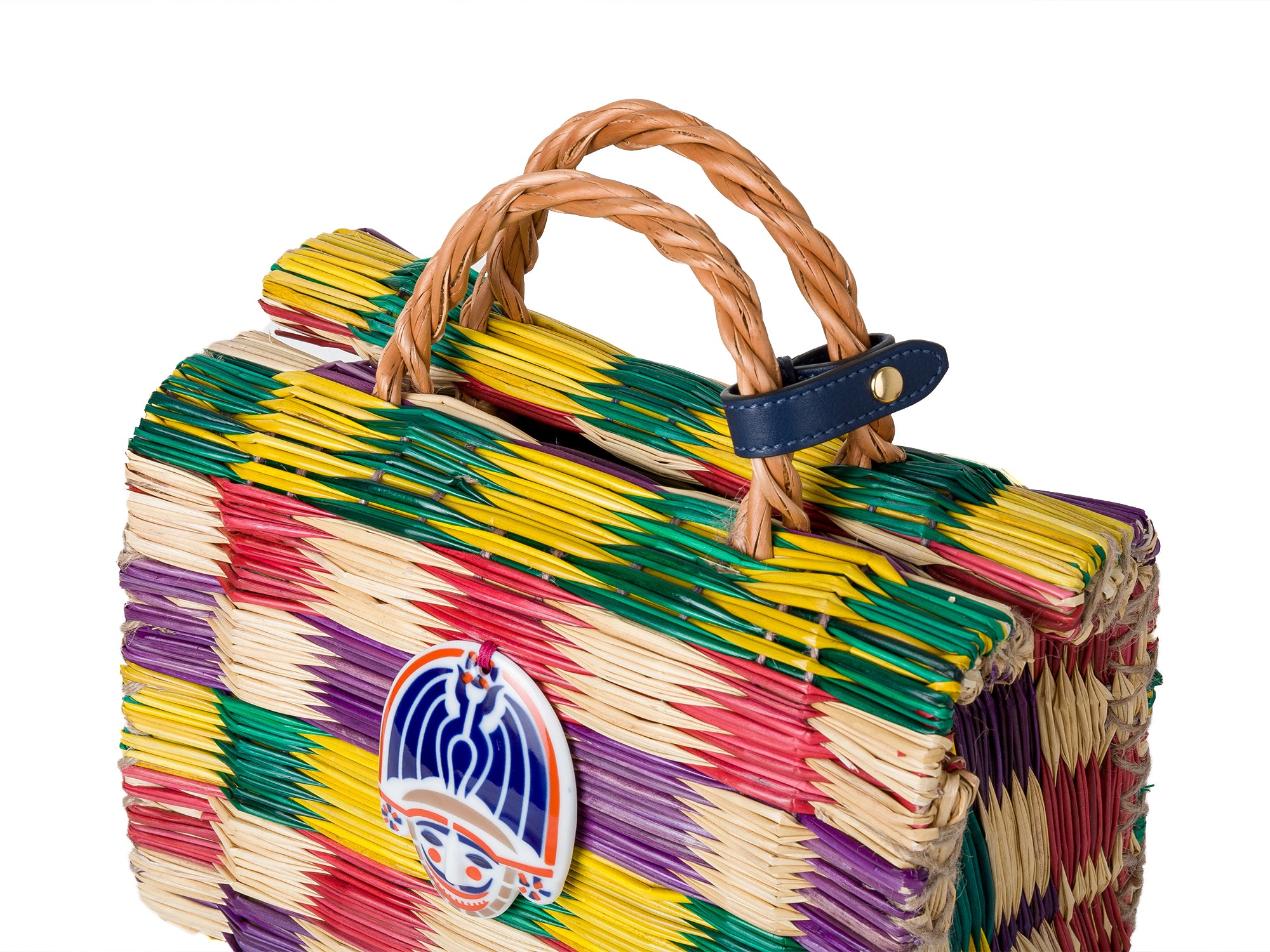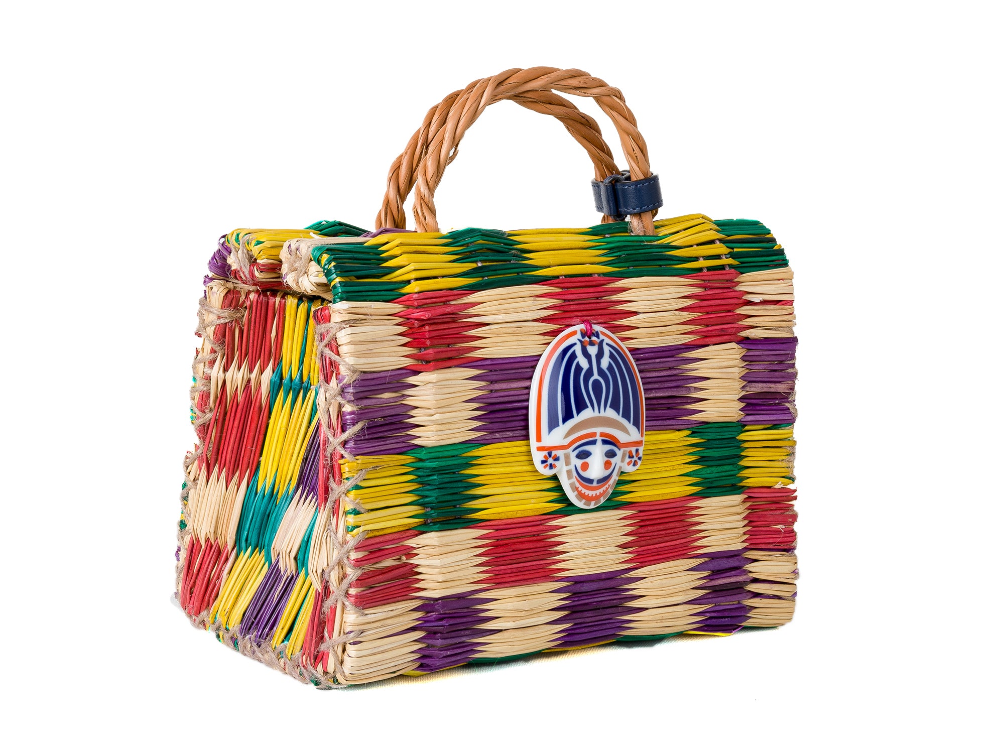 At its heart lies our lucky charm talisman handbag, a collage of the traditional Portuguese handwoven reed basket with the porcelain Cigarron charm from Sargadelos, a lucky symbol of the Galician carnival.