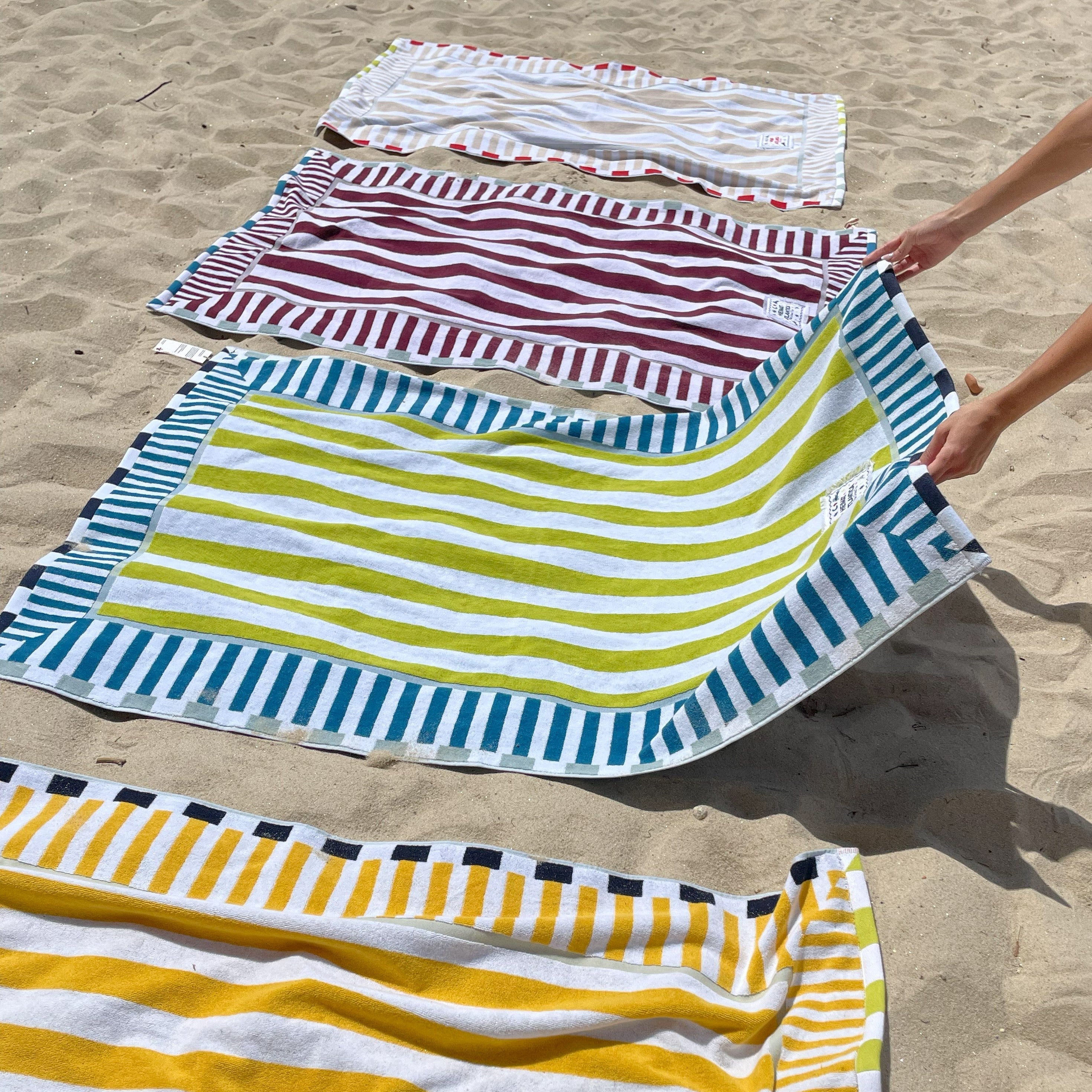 The Iconic Towel in blue & lime brings comfort and color wherever you go.