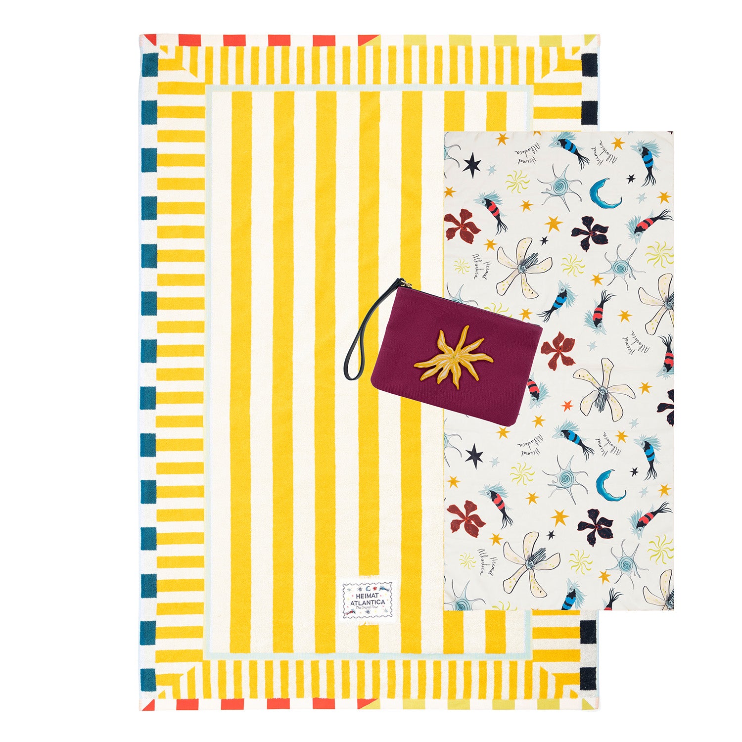 - Our iconic striped towel in yellow brings instant joy. Woven in Portugal, it’s lightweight, quick-drying, and made for days that begin on the sand and end at sunset.