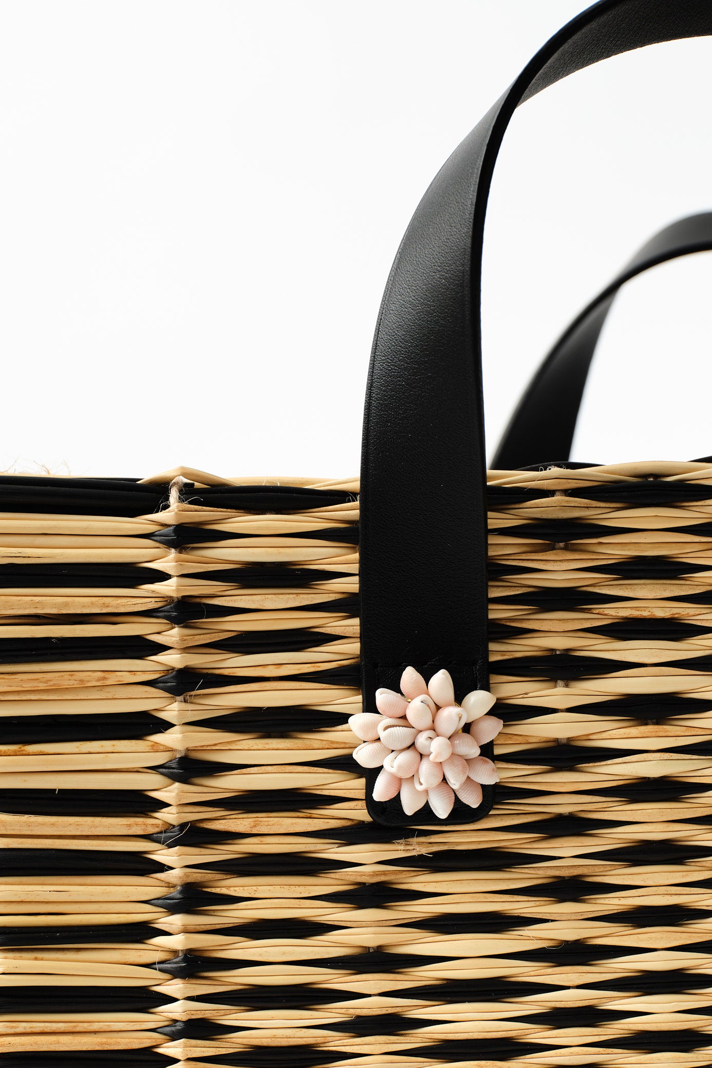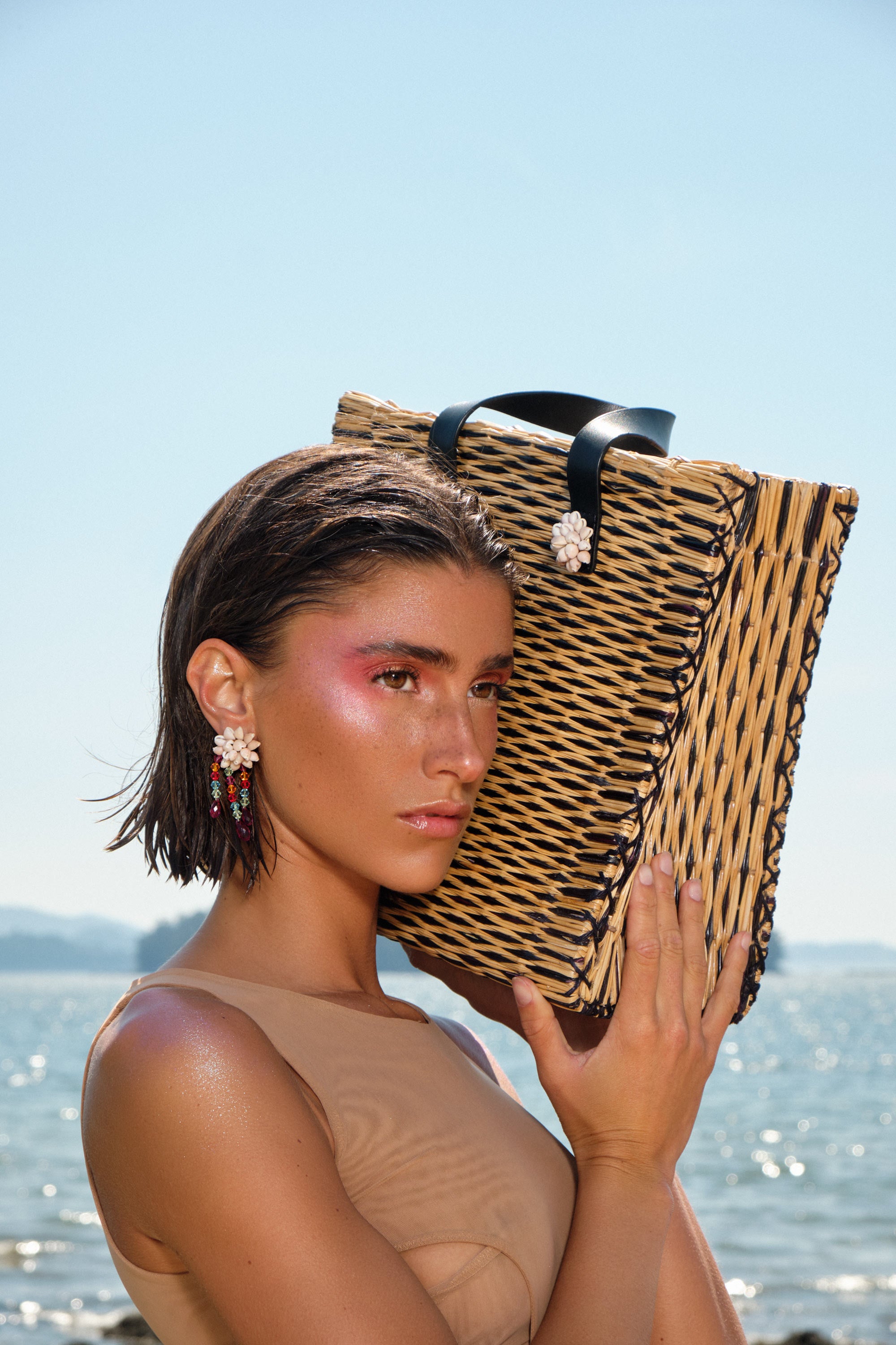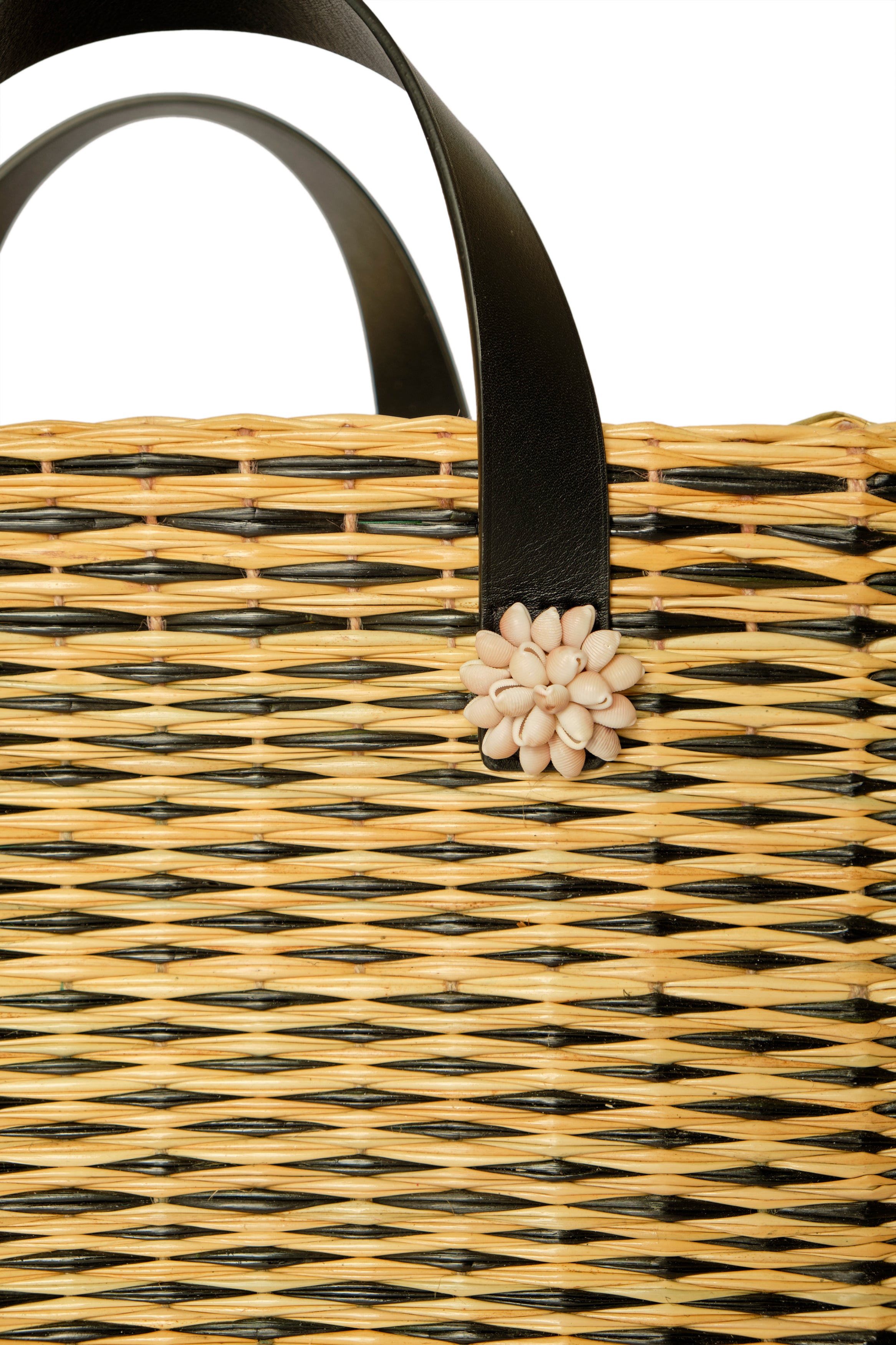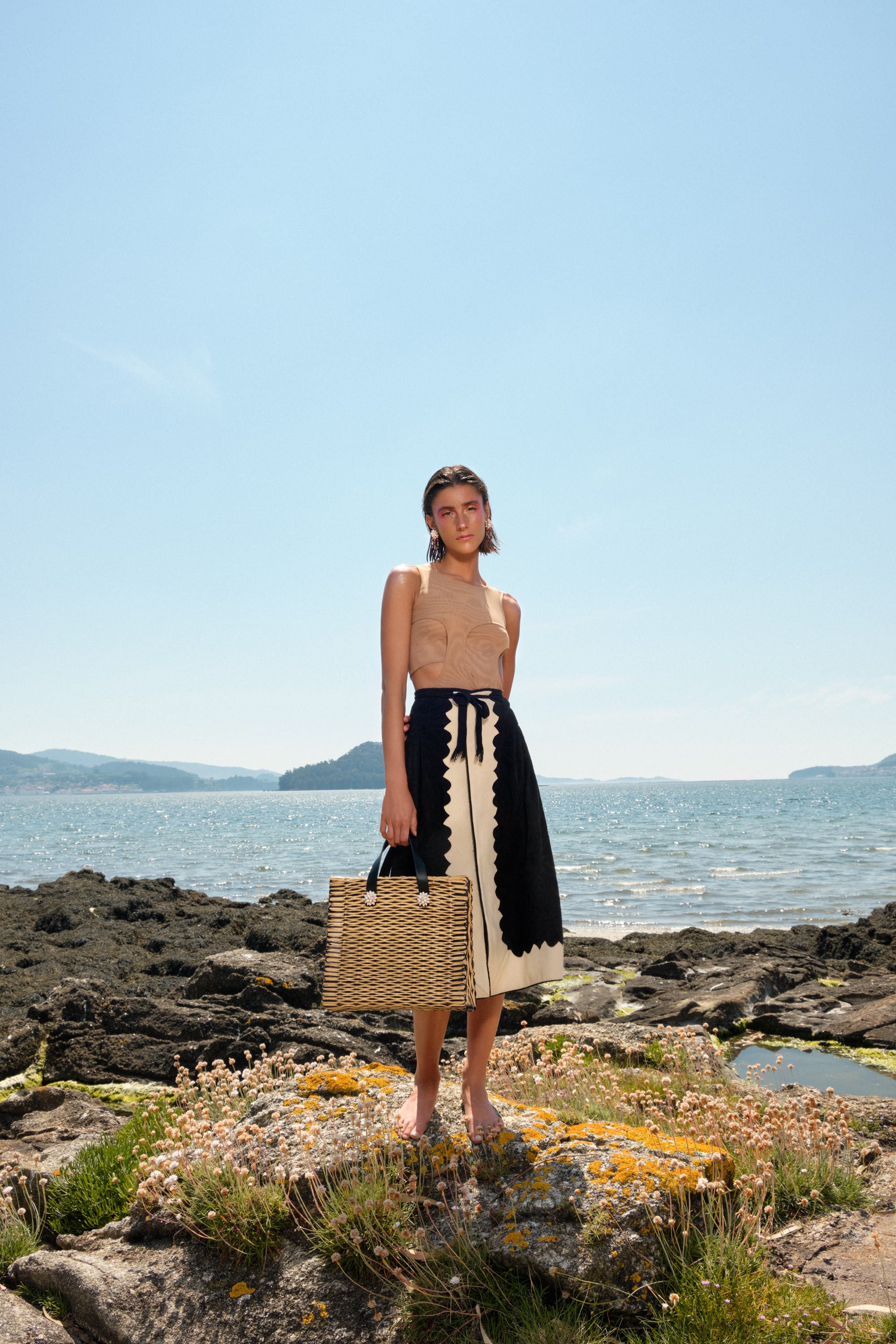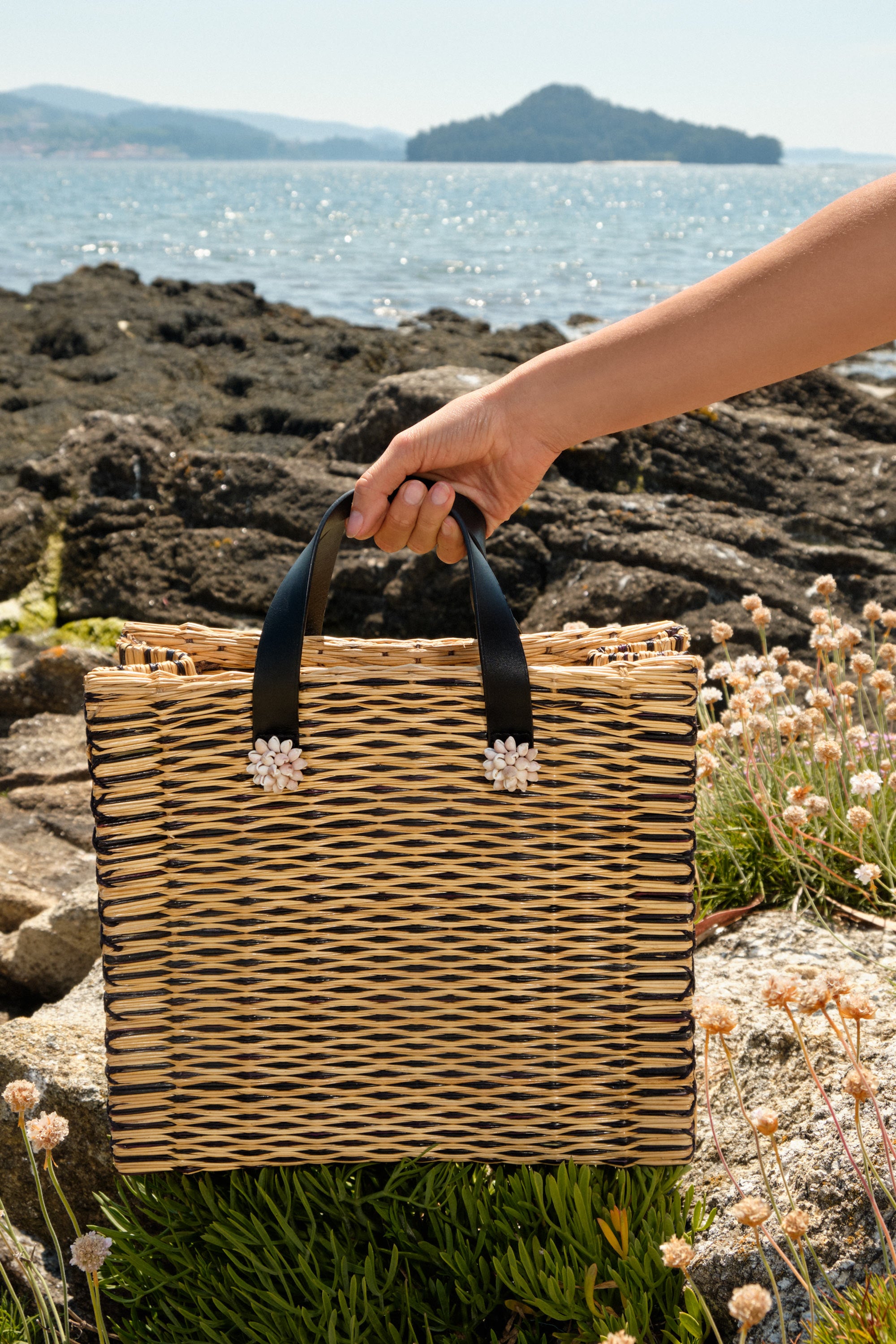 Handwoven in Portugal from natural reed using their centuries-old basketry technique, and adorned with hand-embroidered sea shells crafted by the Colareiras of Galicia, it embodies a unique cultural dialogue between Portugal and Spain. A piece where heritage meets creative evolution: a summer accessory you’ll return to season after season.