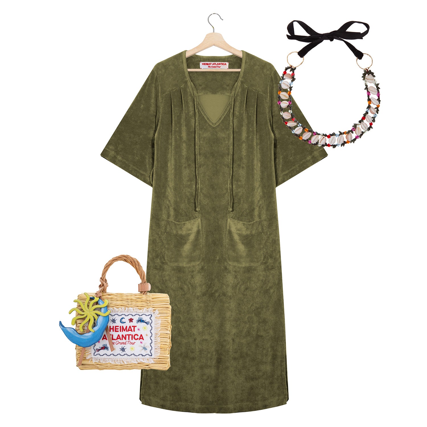 The Grand Tour bag is embellished with a handcrafted leather charm and a precious embroidered linen label—a small canvas that encapsulates the spirit of the collection, inspired by the Galician magical realism and represented by a mythical fish, a celestial traveler that glides effortlessly between the deep Atlantic waters and the vast starry sky, carrying with it the stories of distant lands where flowers bloom in unknown archipelagos, and the sea whispers forgotten tales.