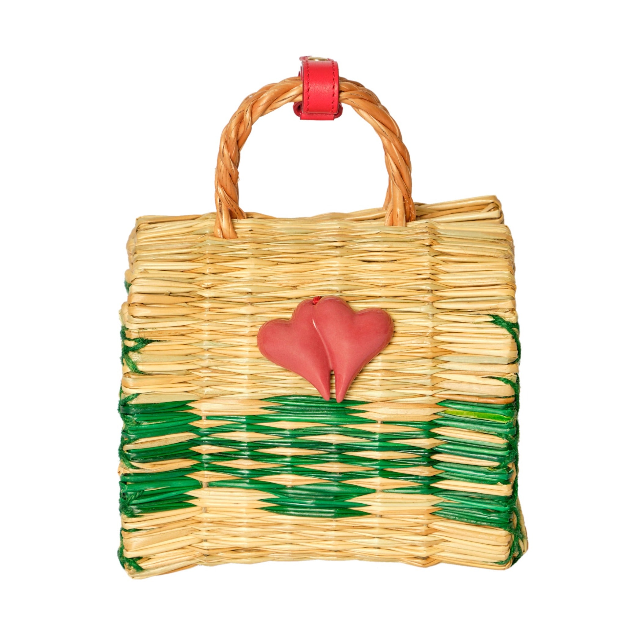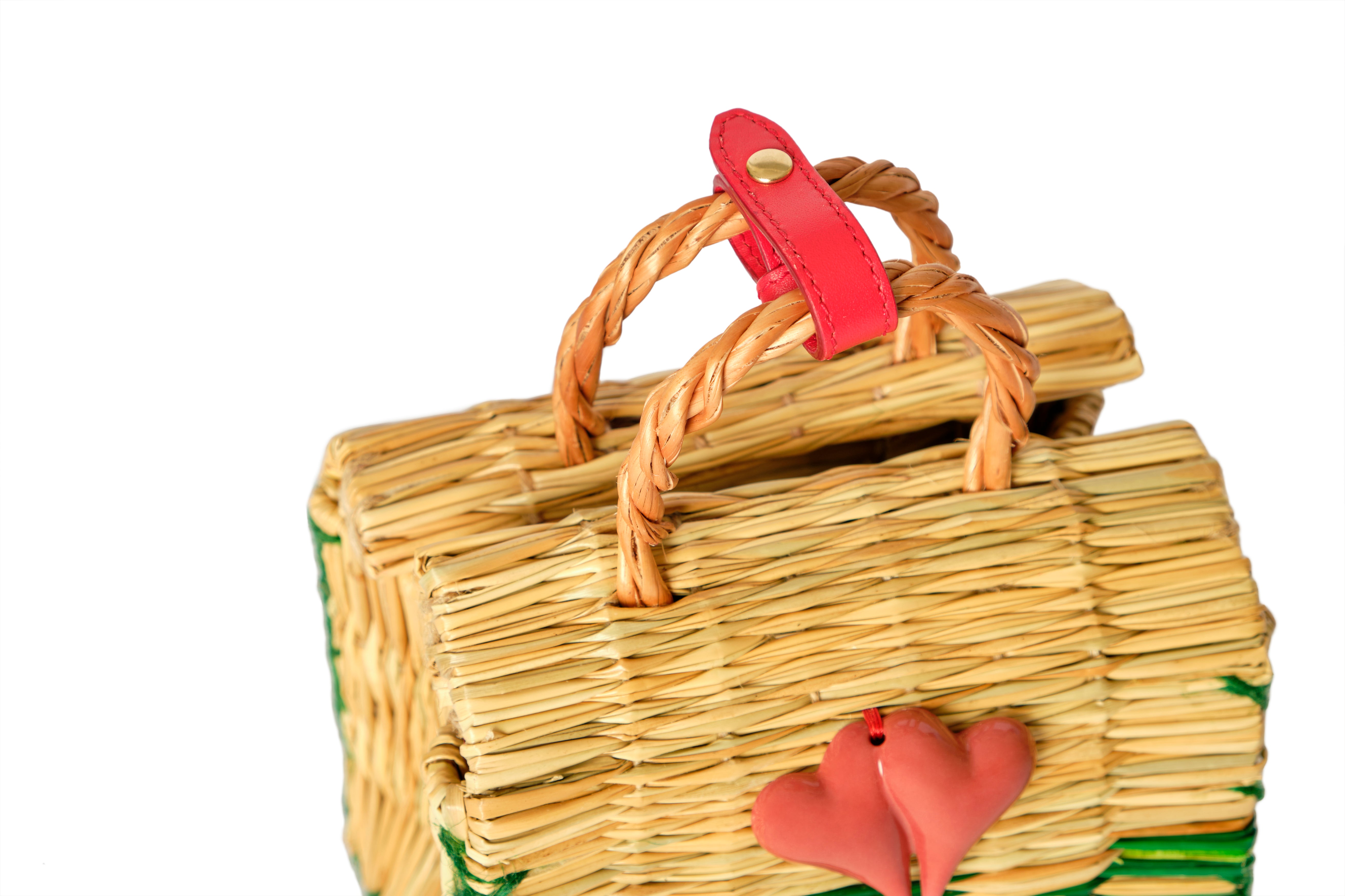 At its heart lies our lucky charm talisman handbag, a collage of the Portuguese handwoven reed basket with the traditional porcelain lucky hearts. The charm helps you attract luck into your life.