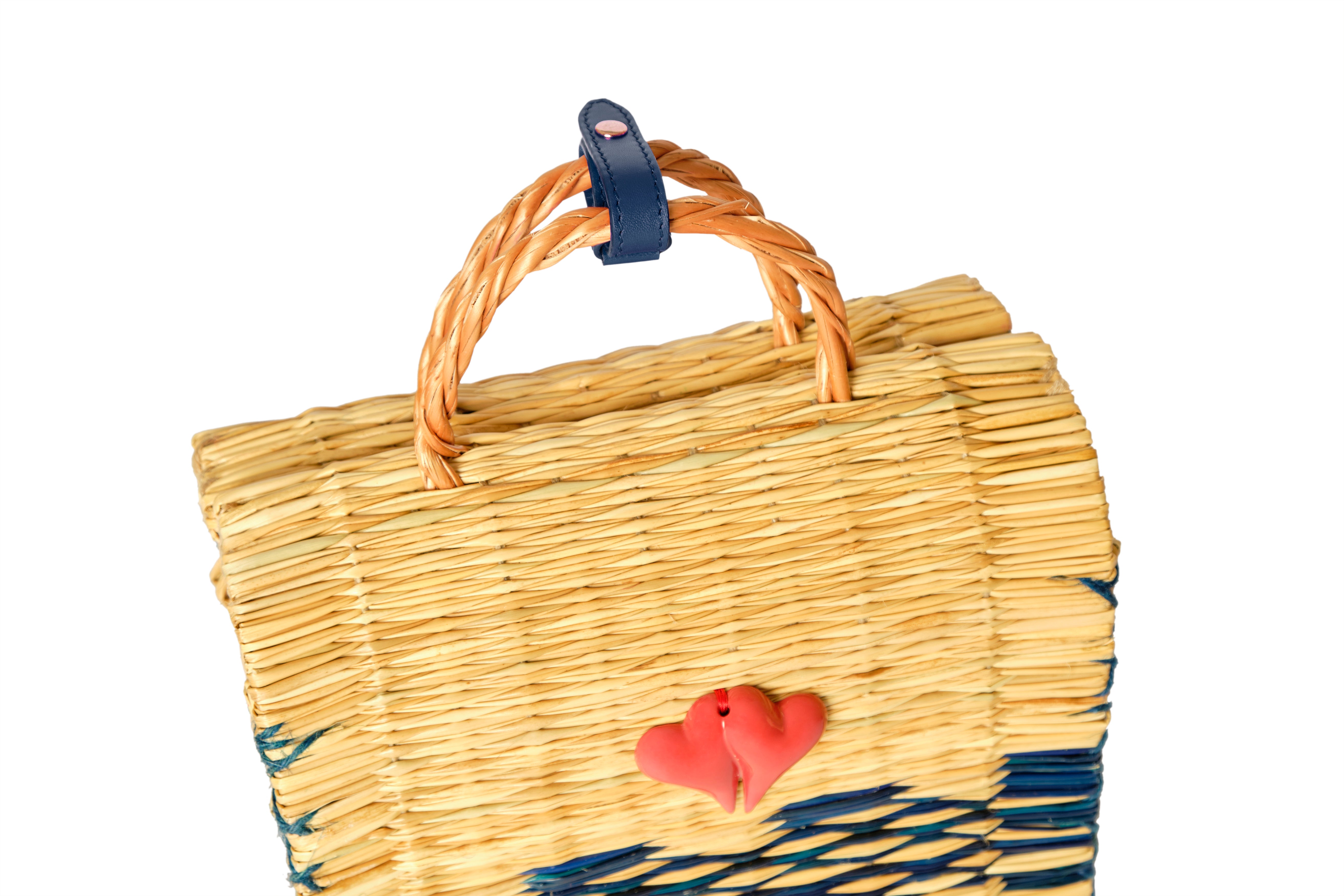 At its heart lies our lucky charm talisman handbag, a collage of the Portuguese handwoven reed basket with the traditional porcelain lucky hearts. The charm helps you attract luck into your life.