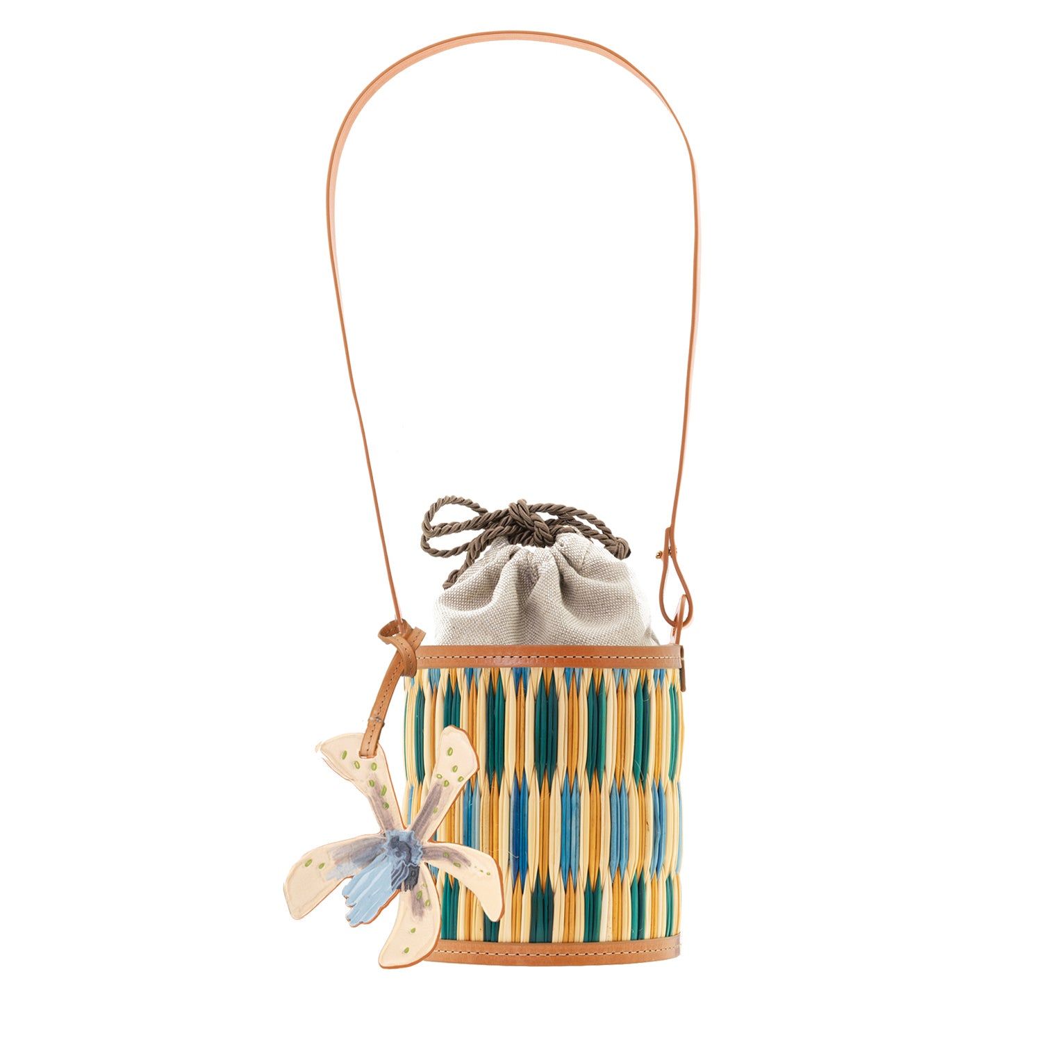 THE GRAND TOUR COLLECTION CUPID MADRAS comes to be the must-have accessory for your summer adventures. We maintain our iconic madras pattern in blue, camel and green shades, now embellished with a precious leather charm made from an orchid handmade illustration.