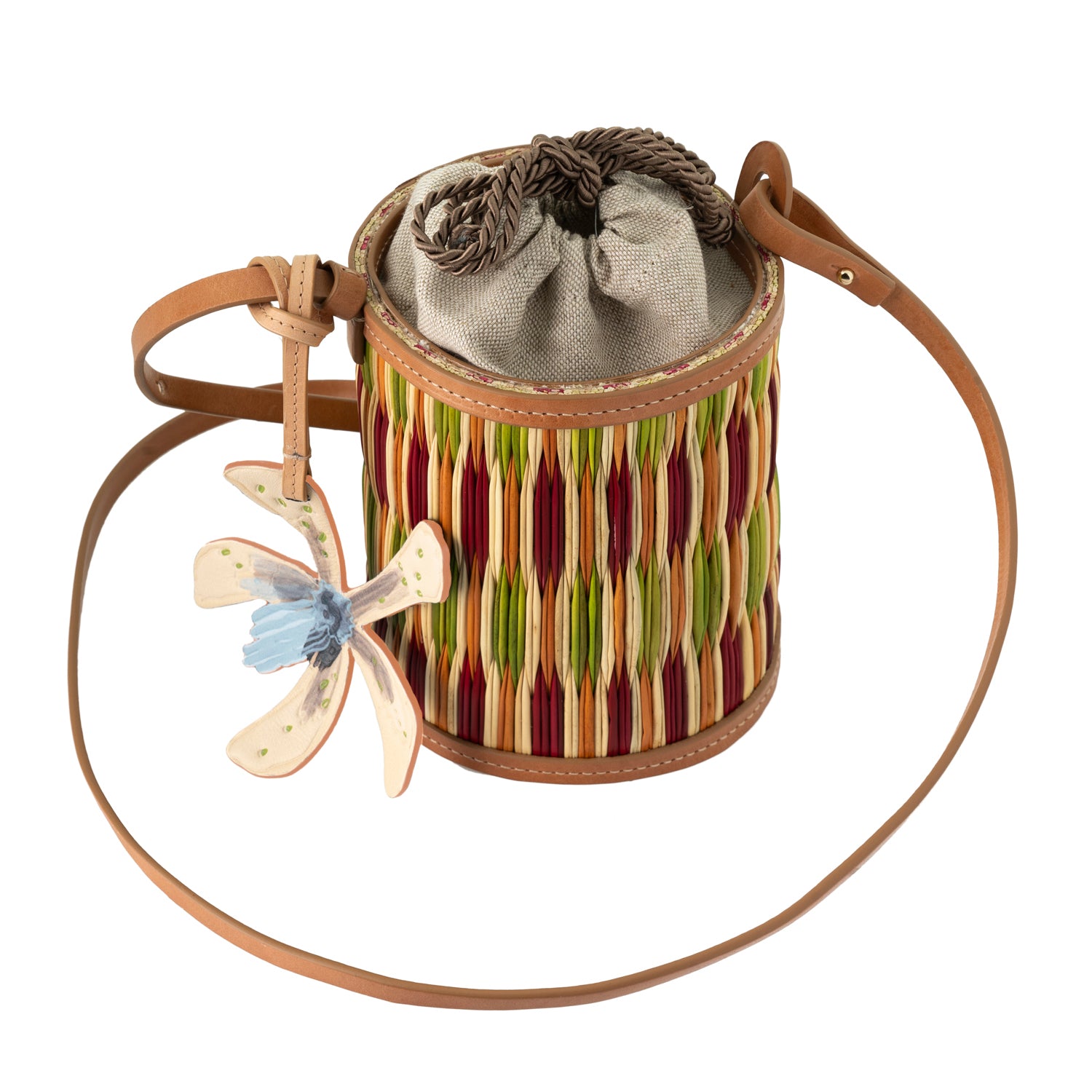 It's topped with a twill drawstring pouch and has an adjustable strap so you can carry it over your shoulder or crossbody. This bag has enough space inside for carrying everything you need for your getaway, including your smartphone, sunglasses, keys or makeup compact.