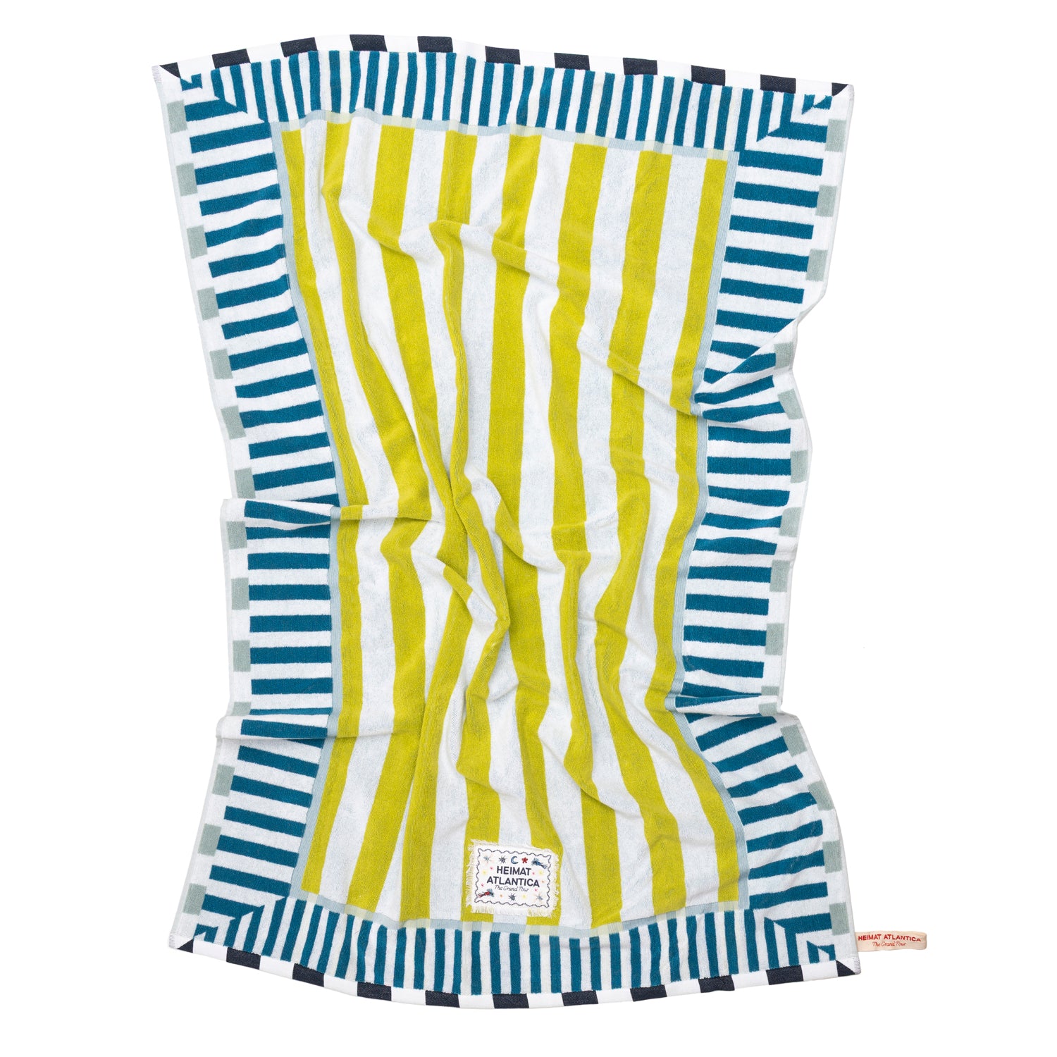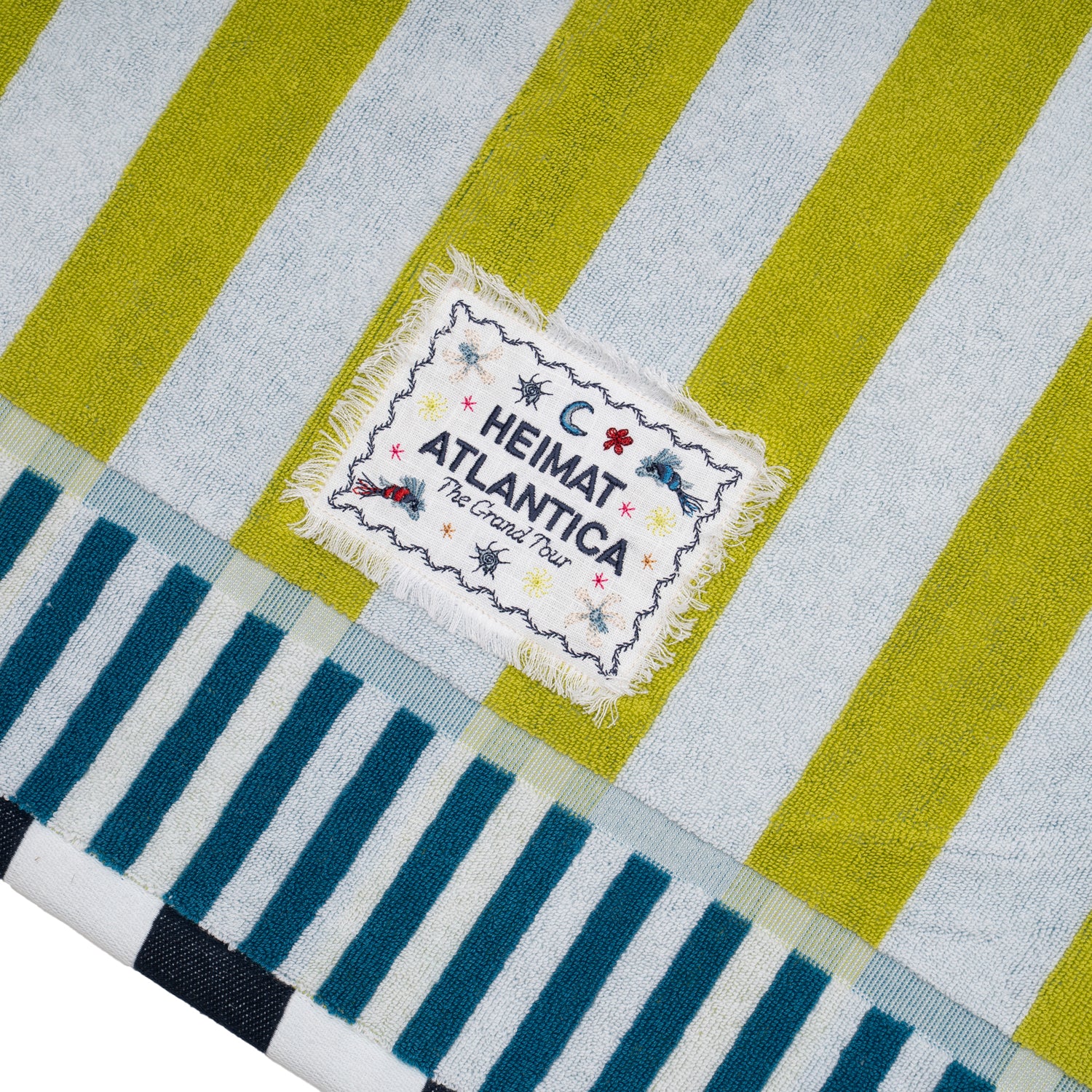 Heimat Atlantica’s beach towel, our take on the traditional striped towel. Generously sized, ideal for stretching our on the sand or on a lounger by the pool.