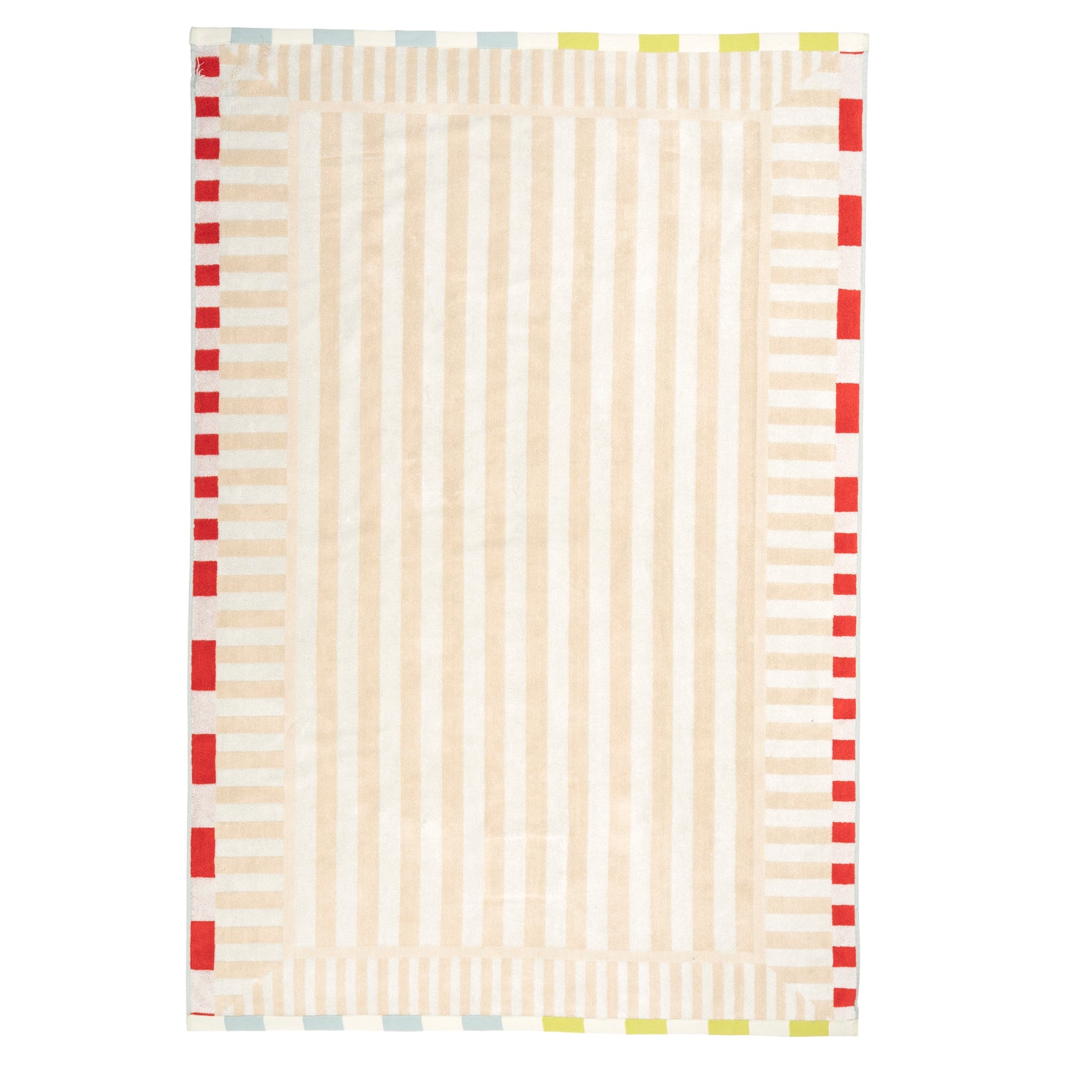 This towel will join you on your beach days in comfort and style. Its distinctive design and colorfully striped borders make it easy to spot.