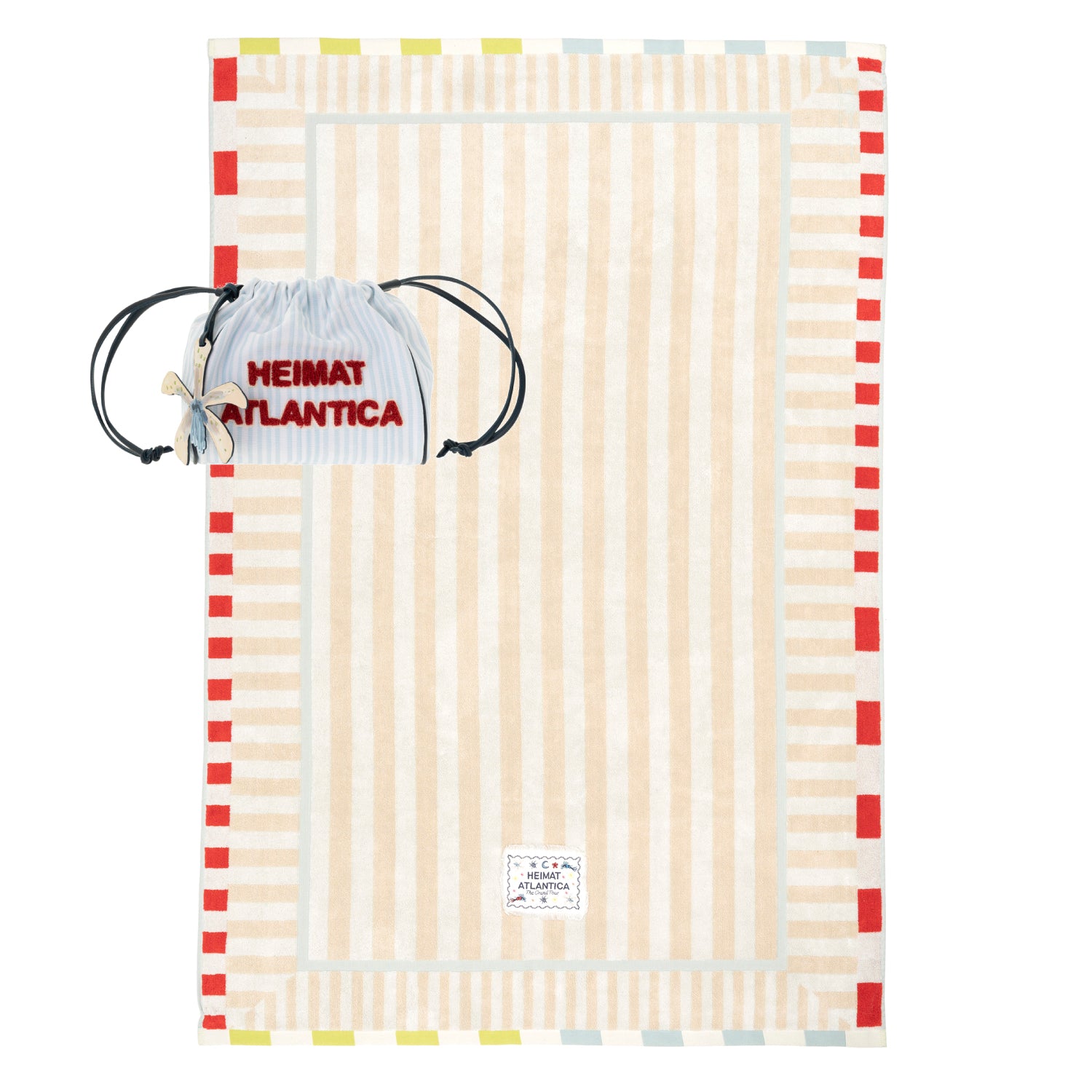 Heimat Atlantica’s beach towel, our take on the traditional striped towel. Generously sized, ideal for stretching our on the sand or on a lounger by the pool.