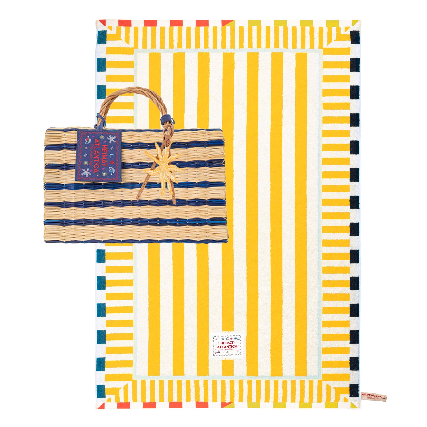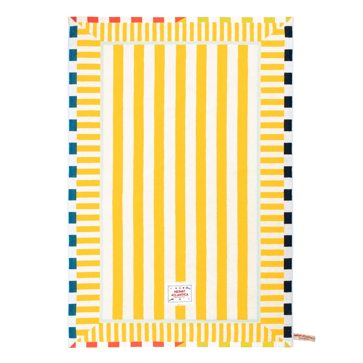 Heimat Atlantica’s beach towel, our take on the traditional striped towel. Generously sized, ideal for stretching our on the sand or on a lounger by the pool.