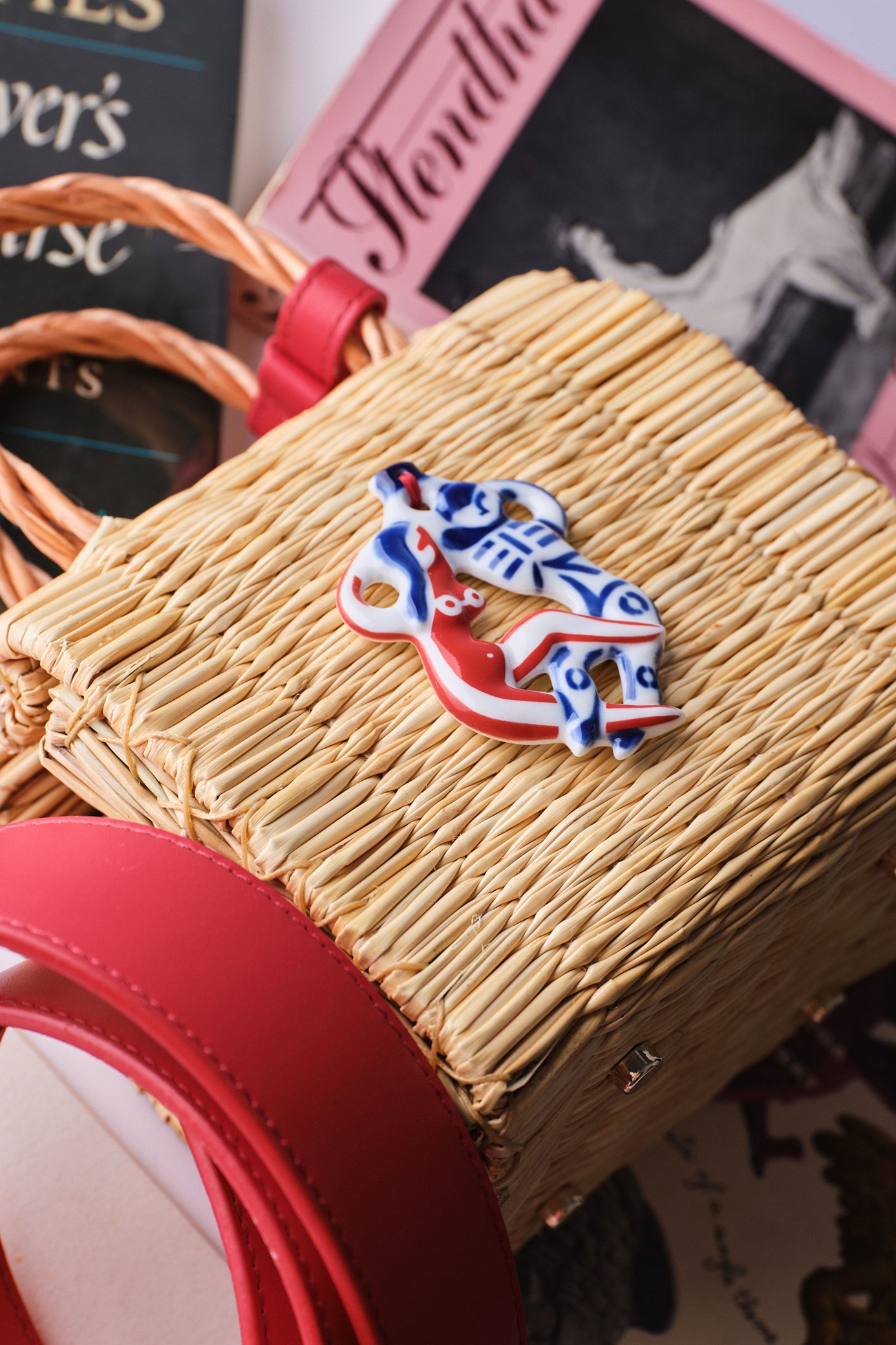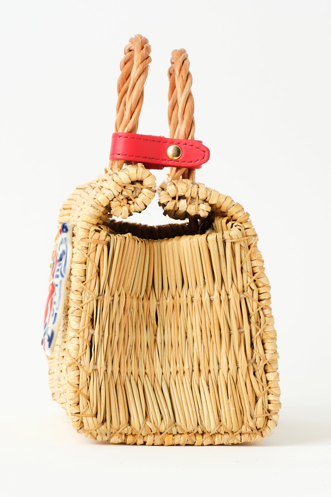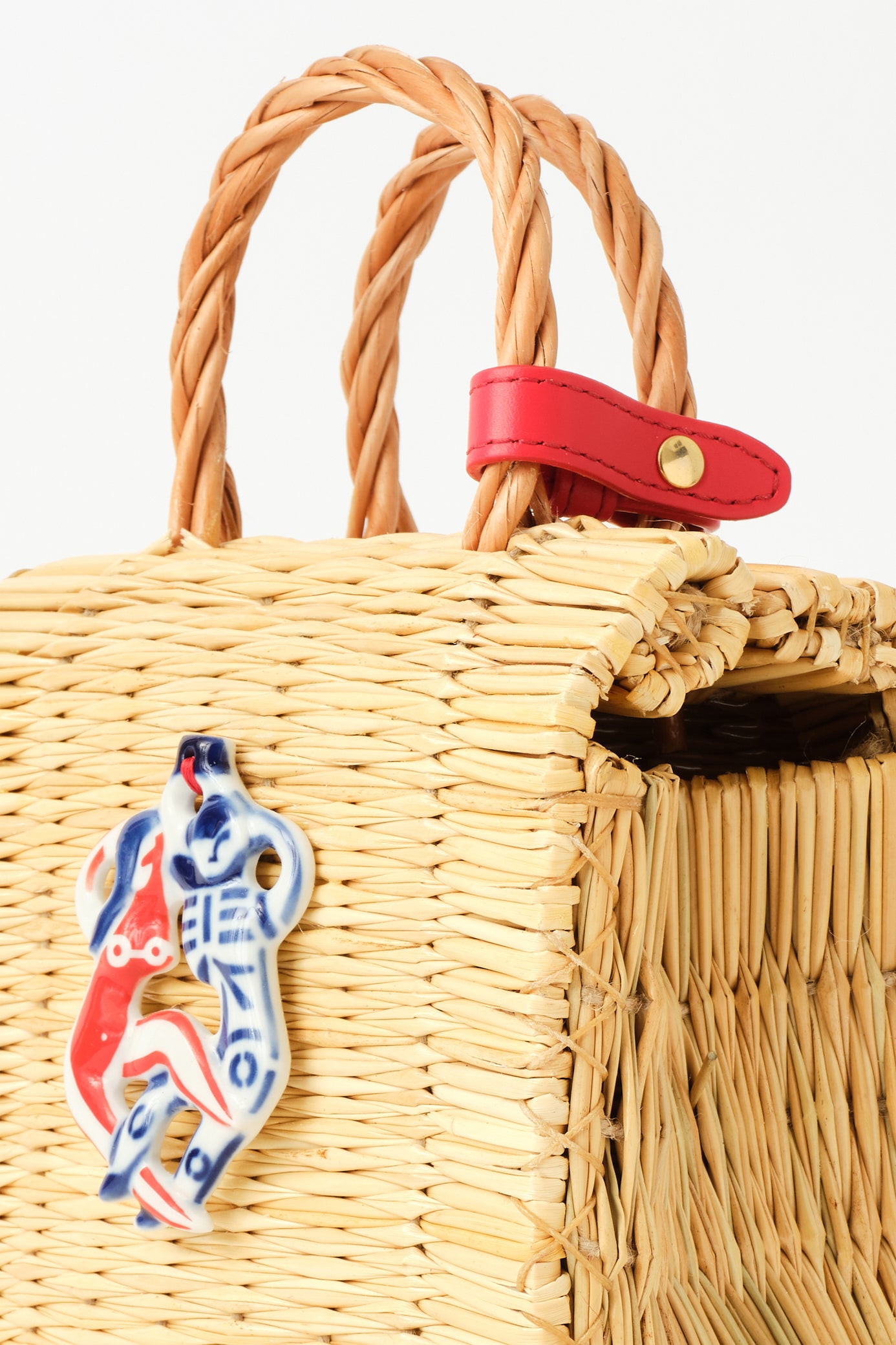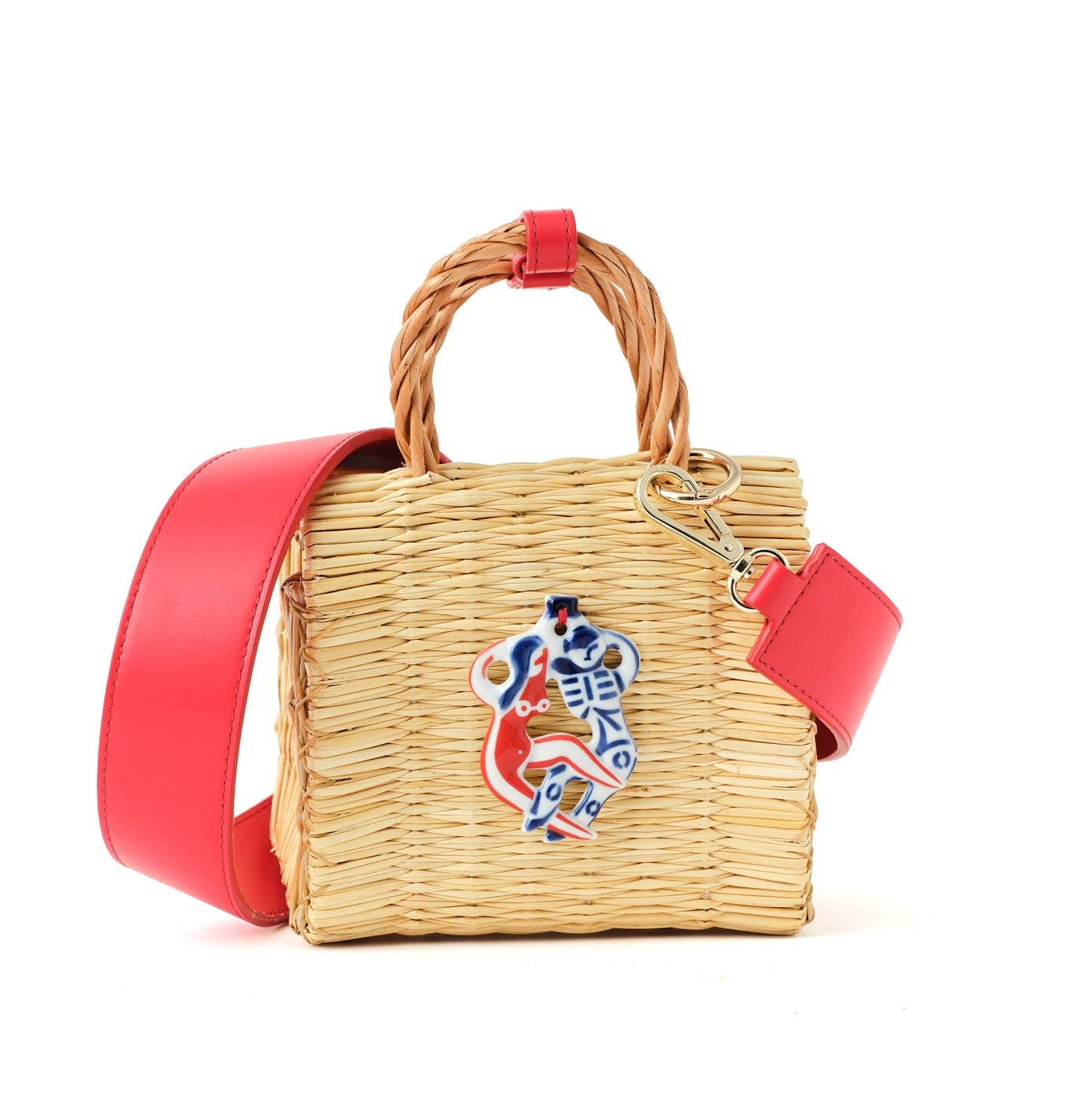 At its heart lies our lucky charm talisman handbag, a collage of the Portuguese handwoven reed basket with the traditional porcelain Biser charm from Sargadelos. The biser charm helps those who seek love.