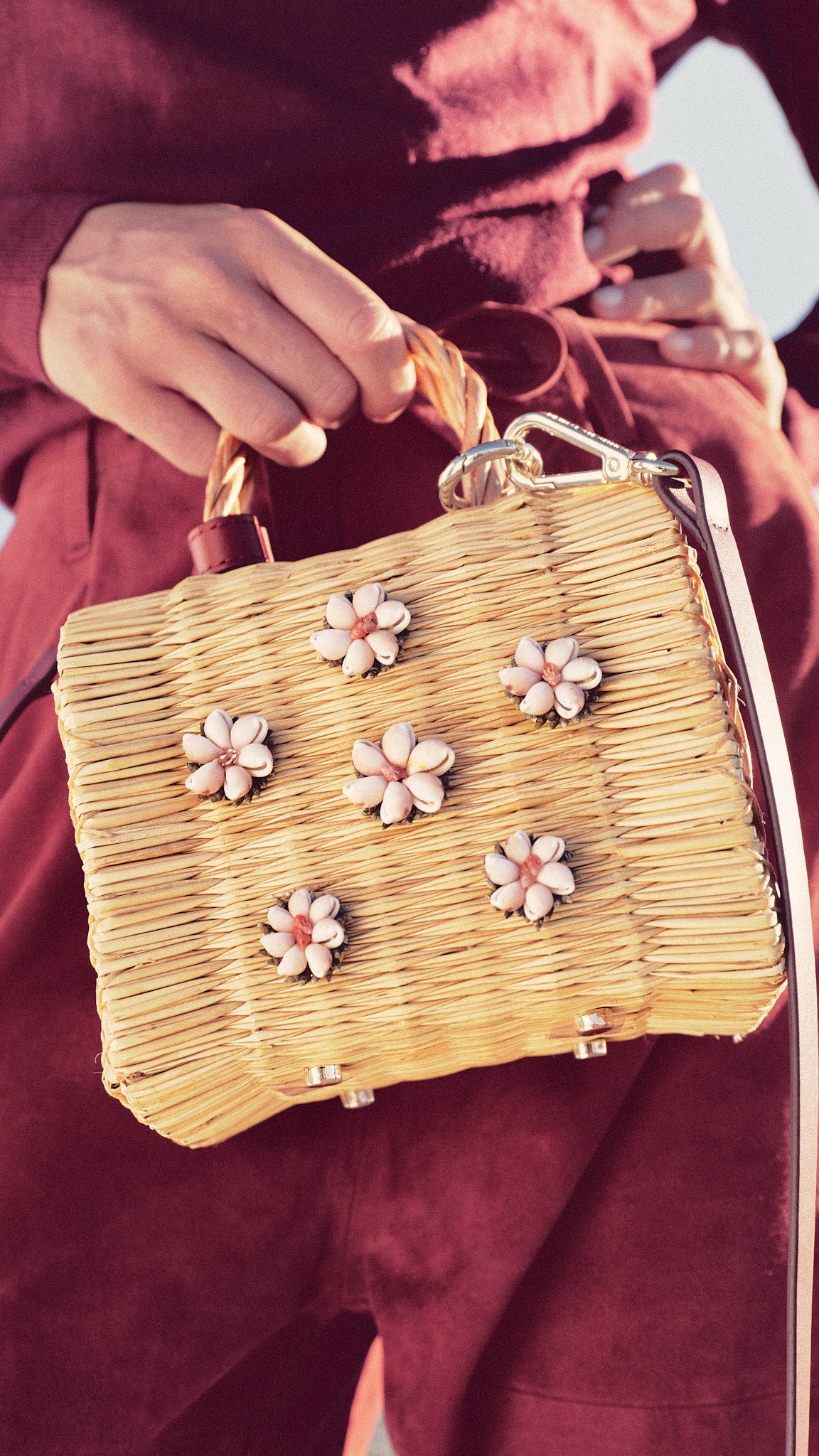 Hand-embroidered shell flowers, natural reed, and the finest Spanish leather come together in a piece that embodies heritage, craftsmanship, and timeless beauty.