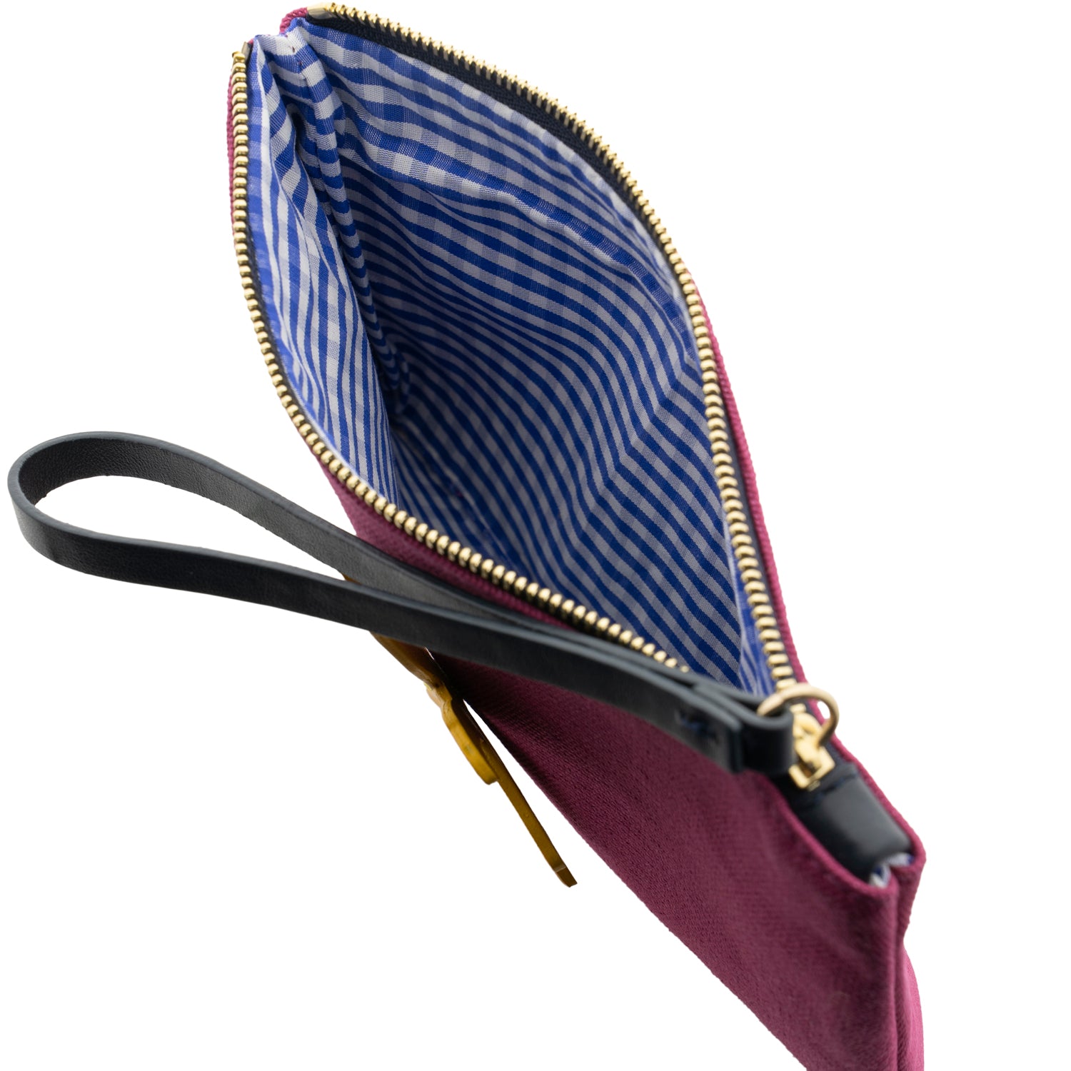 Crafted in Spain with a vichy cotton lining and zipper closure with a leather puller, this wallet is your daily companion for carrying a piece of summer wherever you go.