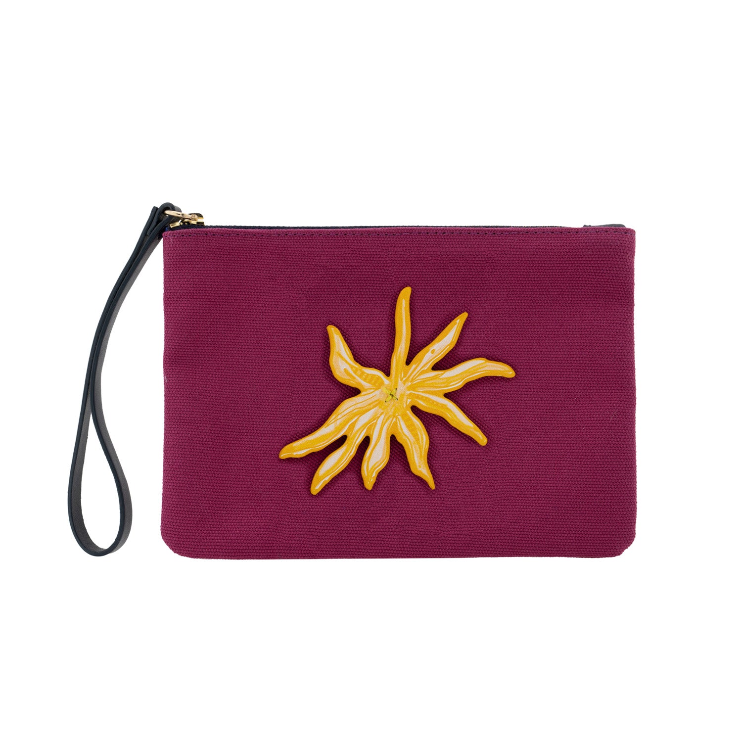 A vibrant burgundy canvas carries the energy of long summer days, adorned with a handcrafted leather sun charm; a symbol of warmth, light, and the joyful spirit of the season.