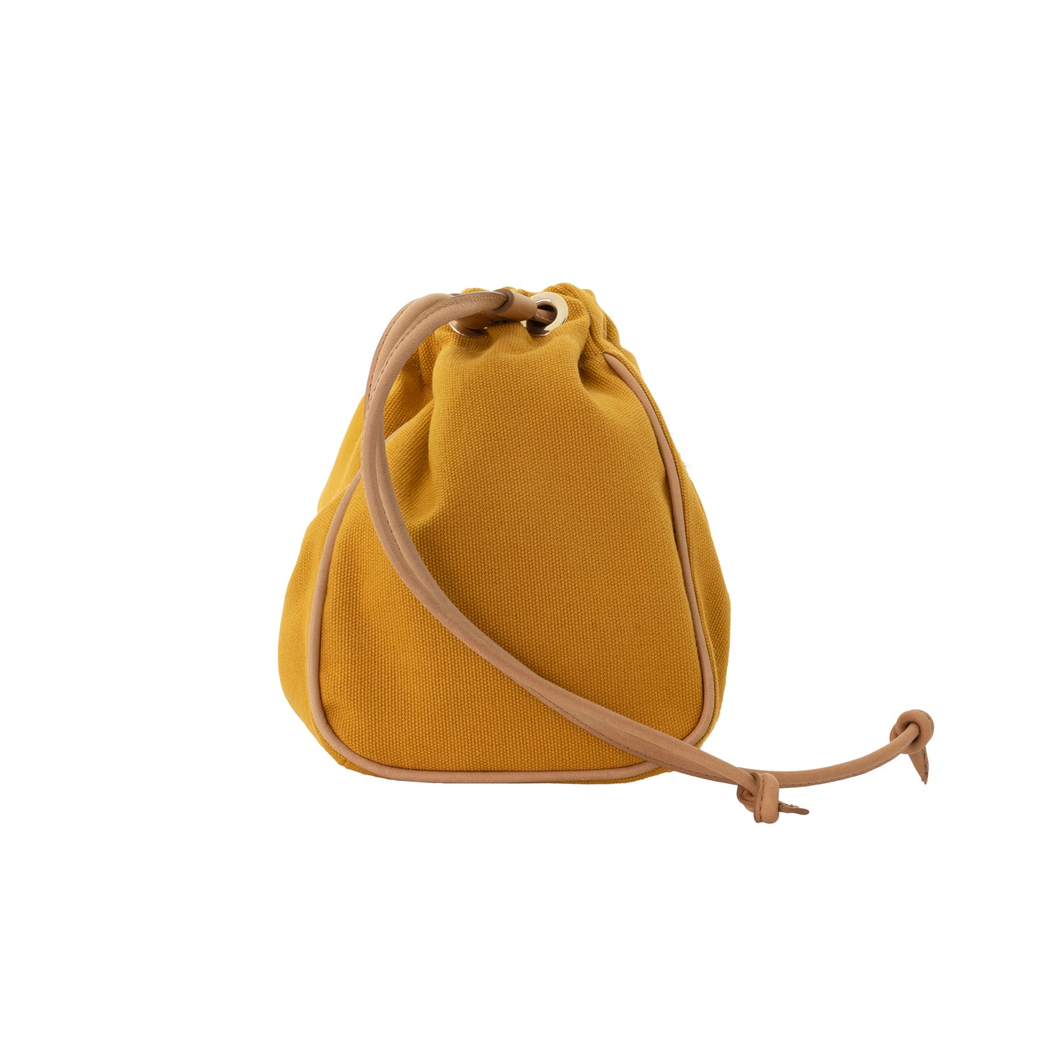 This delicately ruffled bag with leather drawstrings is ideal for holding your essentials. It has a plaid interior, a compartment for your frequently used cards, and space for your phone, sunscreen and keys. It may also be slipped into our totes or handbags.