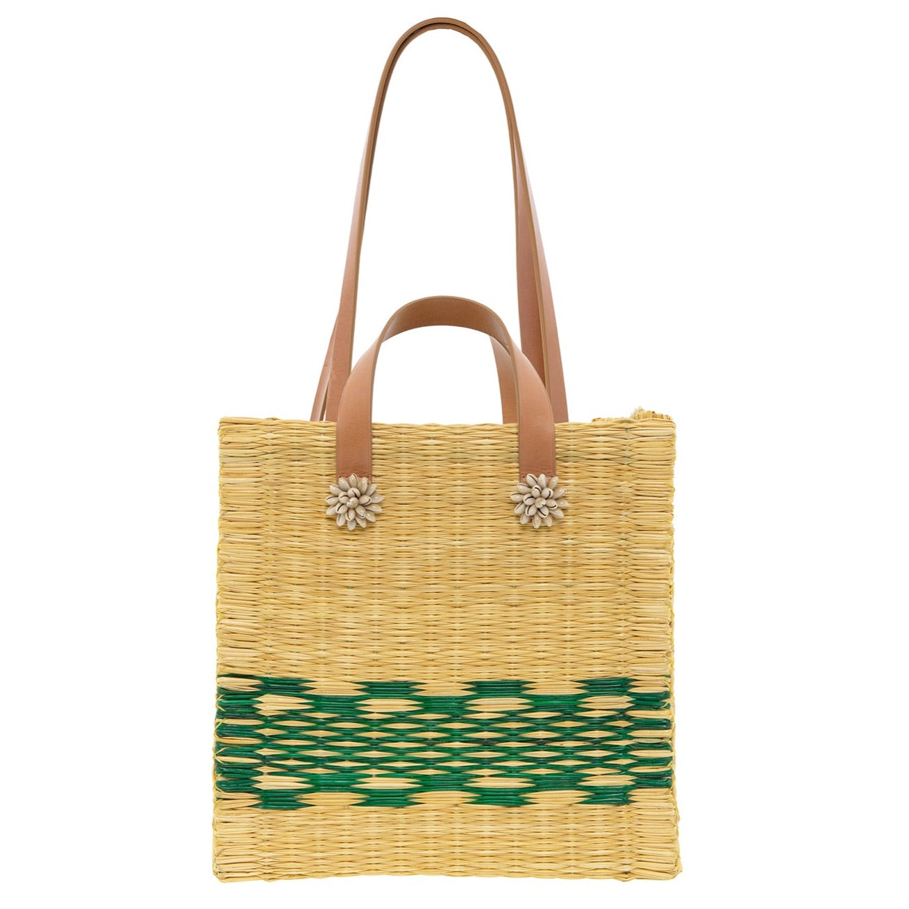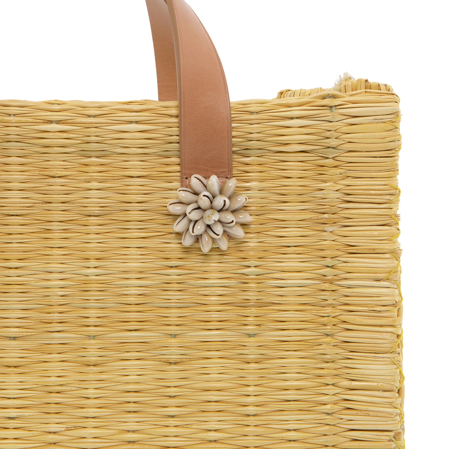 Handwoven in Portugal from natural reed using their centuries-old basketry technique, and adorned with hand-embroidered sea shells crafted by the Colareiras of Galicia, it embodies a unique cultural dialogue between Portugal and Spain. A piece where heritage meets creative evolution: a summer accessory you’ll return to season after season.