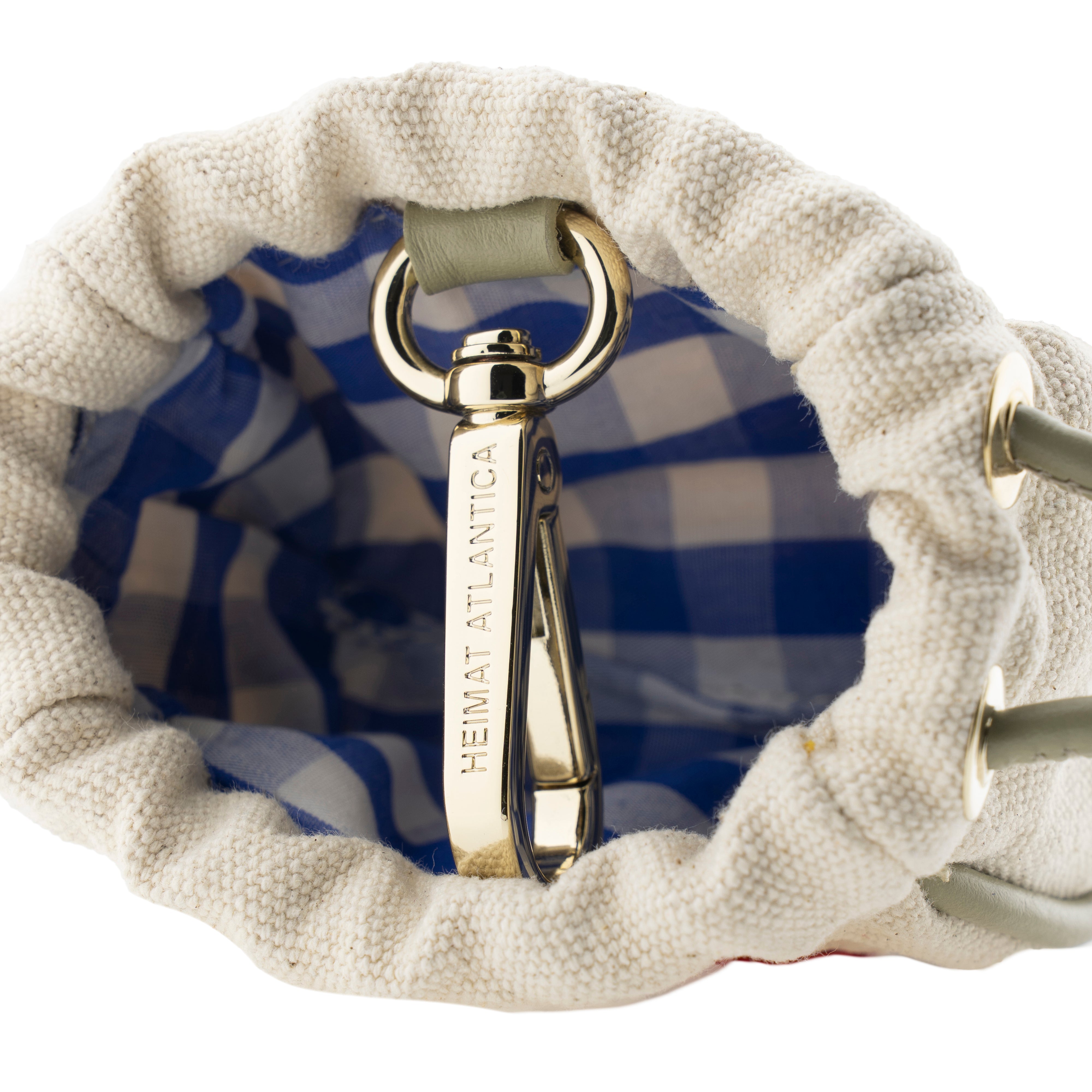 The charm version of our iconic pouch is here to accompany you this summer with a playful twist and endless personalisation options. A miniature canvas of Heimat Atlantica’s universe, it comes with a gold-finish buckle that allows you to clip it onto your pouch for a layered look or hang it from any bag you like for a personal touch that moves with you.